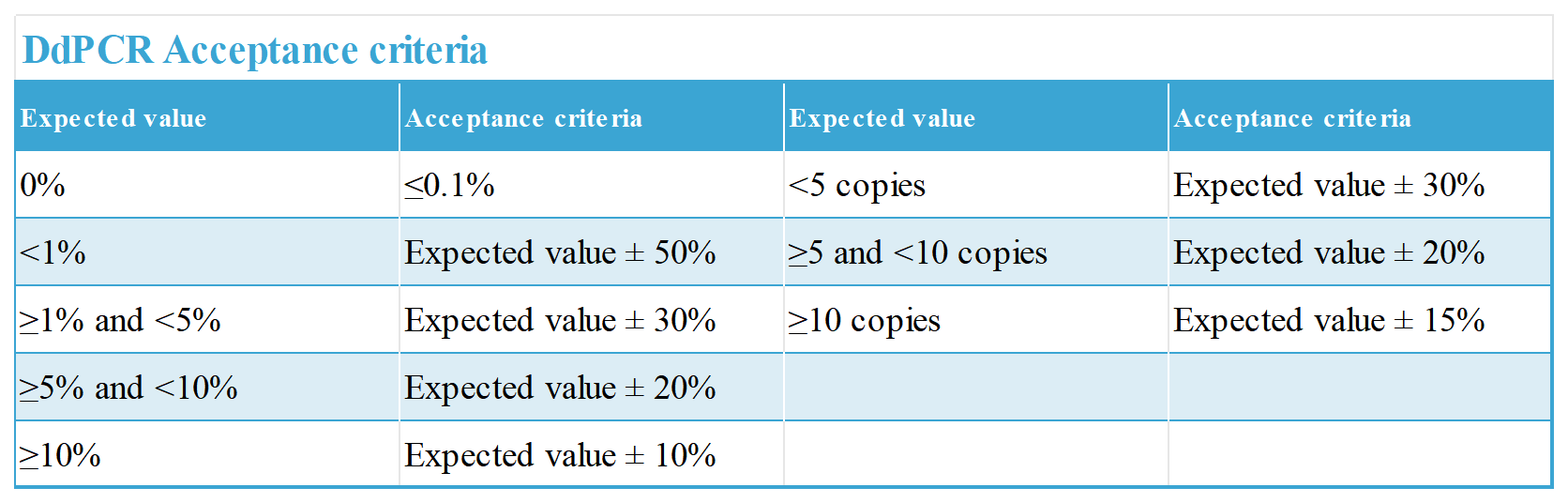 科佰的突變頻率AF是通過(guò)數(shù)字PCR檢測(cè)的,誤差范圍如下: