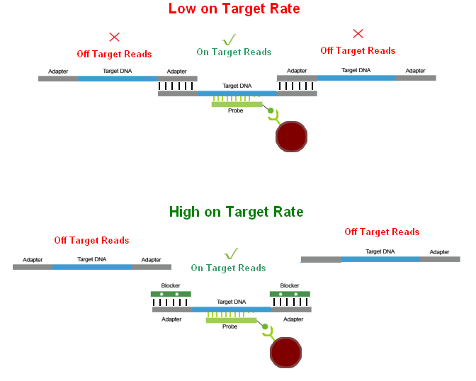Universal Blocker for Illumina是針對Illumina 平臺普通DNA文庫開發(fā)的適用于液相雜交捕獲通用型接頭封阻序列,可有效減少雜交過程中因接頭之間退火而造成的不同文庫分子之間形成的串聯(lián)結(jié)構(gòu),從而降低非特異性雜交。 適用于Illumina Truseq測序平臺的液相雜交捕獲通用封阻斷序列。 適用于6 - 10 bp Index Barcode。 適用于含UMI序列的接頭文庫。 顯著降低接頭之間的非特異性結(jié)合,提高中靶率和富集程度。 在相同測序數(shù)據(jù)量情況下,顯著提升有效測序深度。