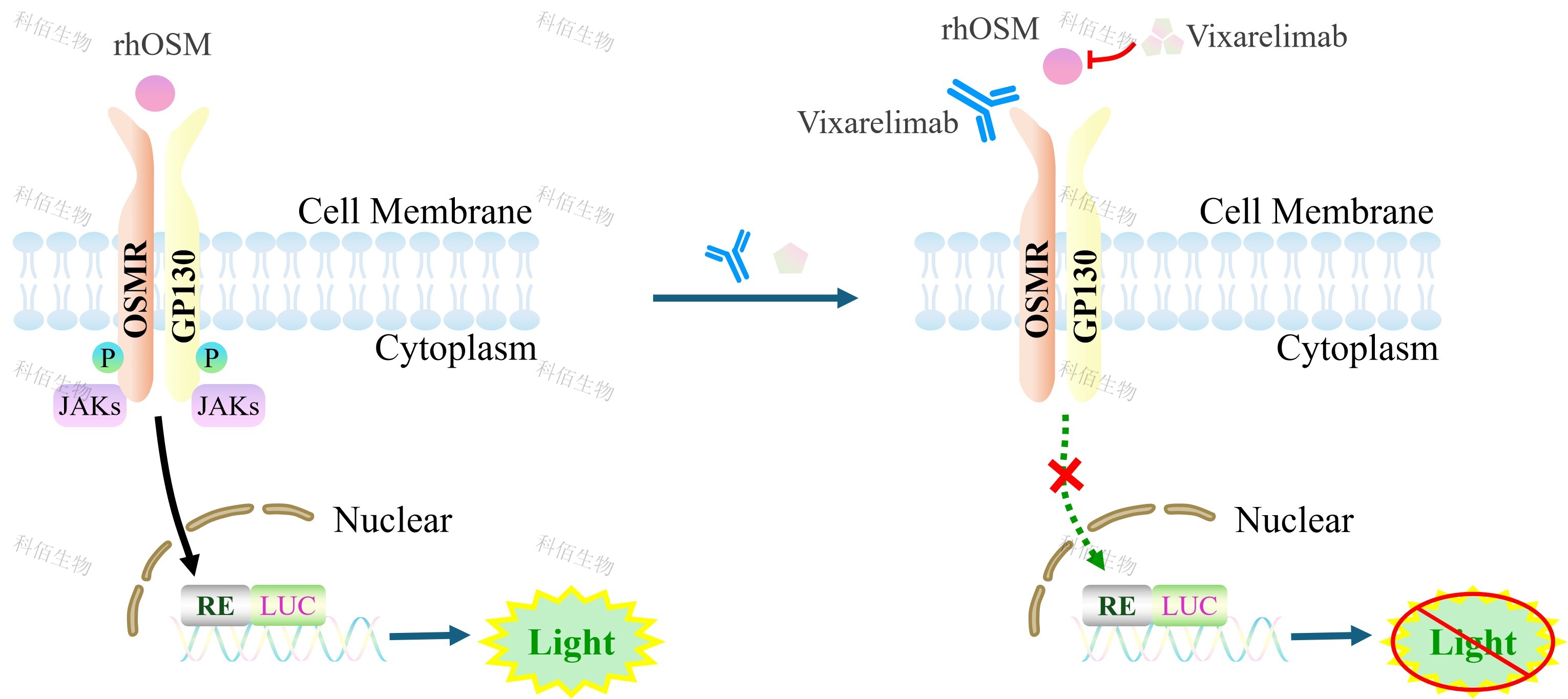 OSMR Effector Reporter Cell 報(bào)告基因藥靶模型很好的模擬了體內(nèi) OSMR 的信號轉(zhuǎn)導(dǎo)過程,原理見圖所示。![]() Figure 1. OSMR Effector Reporter Cell 細(xì)胞模型原理圖 |