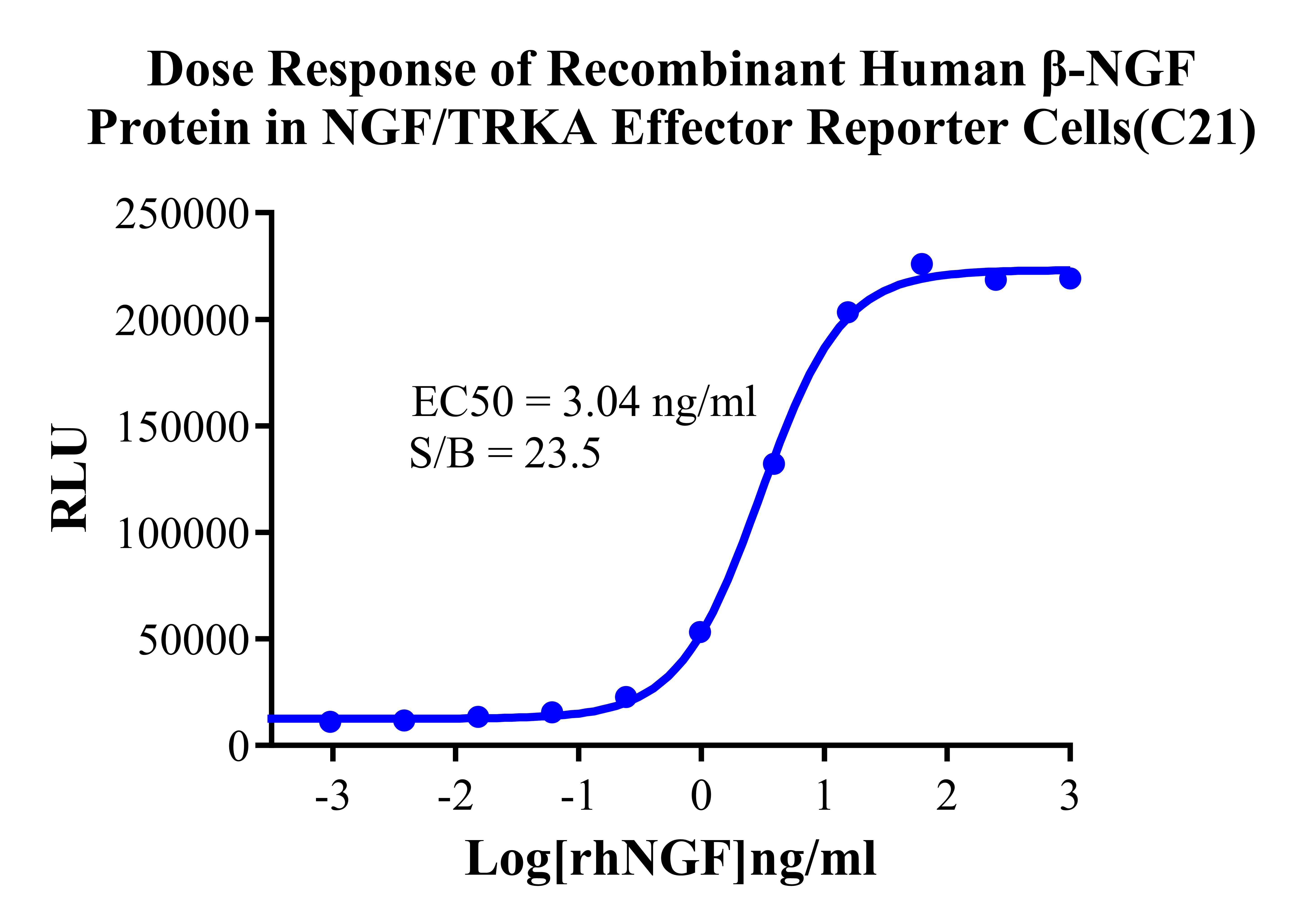Figure 3. Dose Response of Recombinant Human β-NGF Protein in NGF/TRKA Effector Reporter Cells(C21).