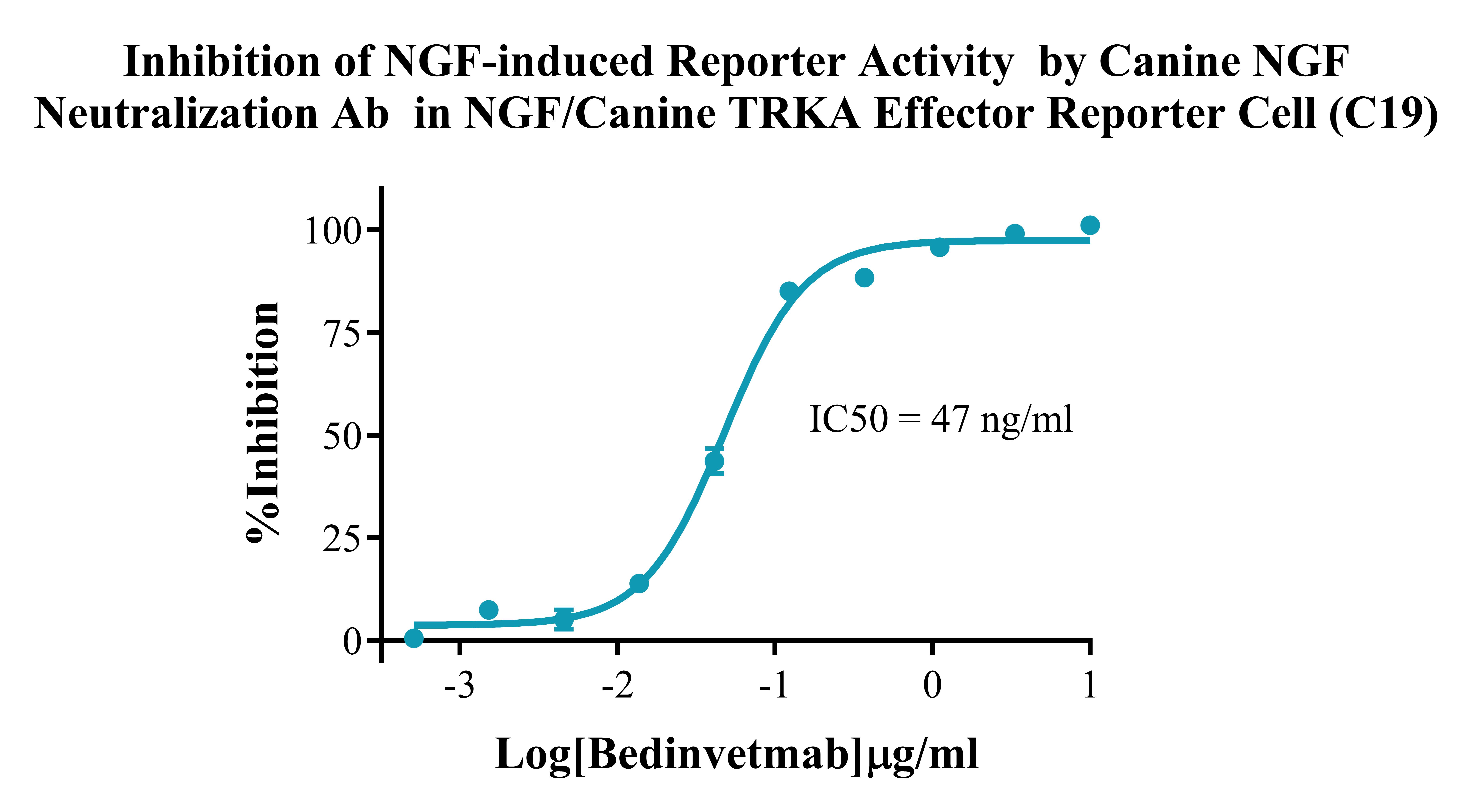 Figure 3. Inhibition of NGF-induced Reporter Activity by Canine NGF Neutralization Ab in NGF/Canine TRKA Effector Reporter Cell (C19).