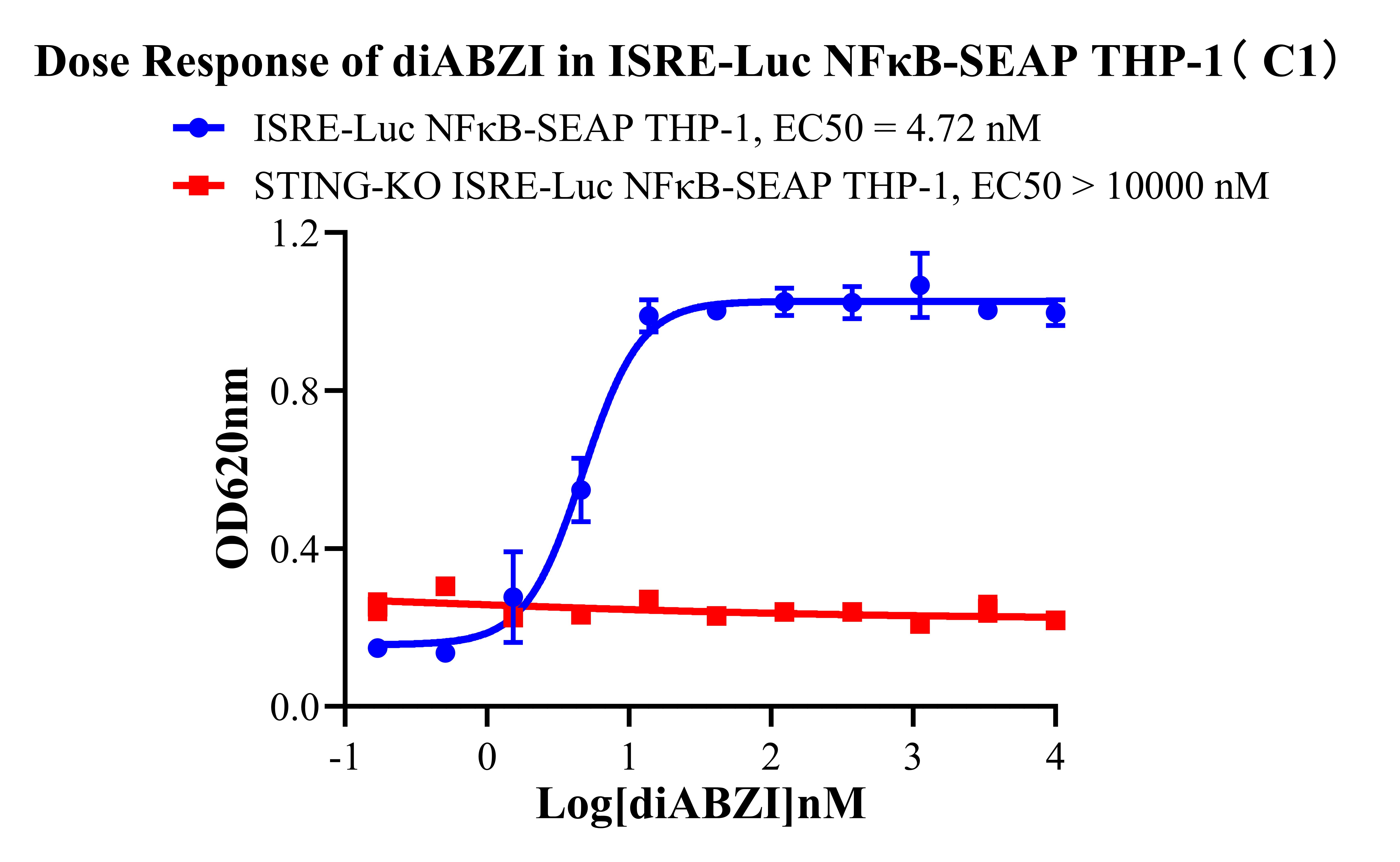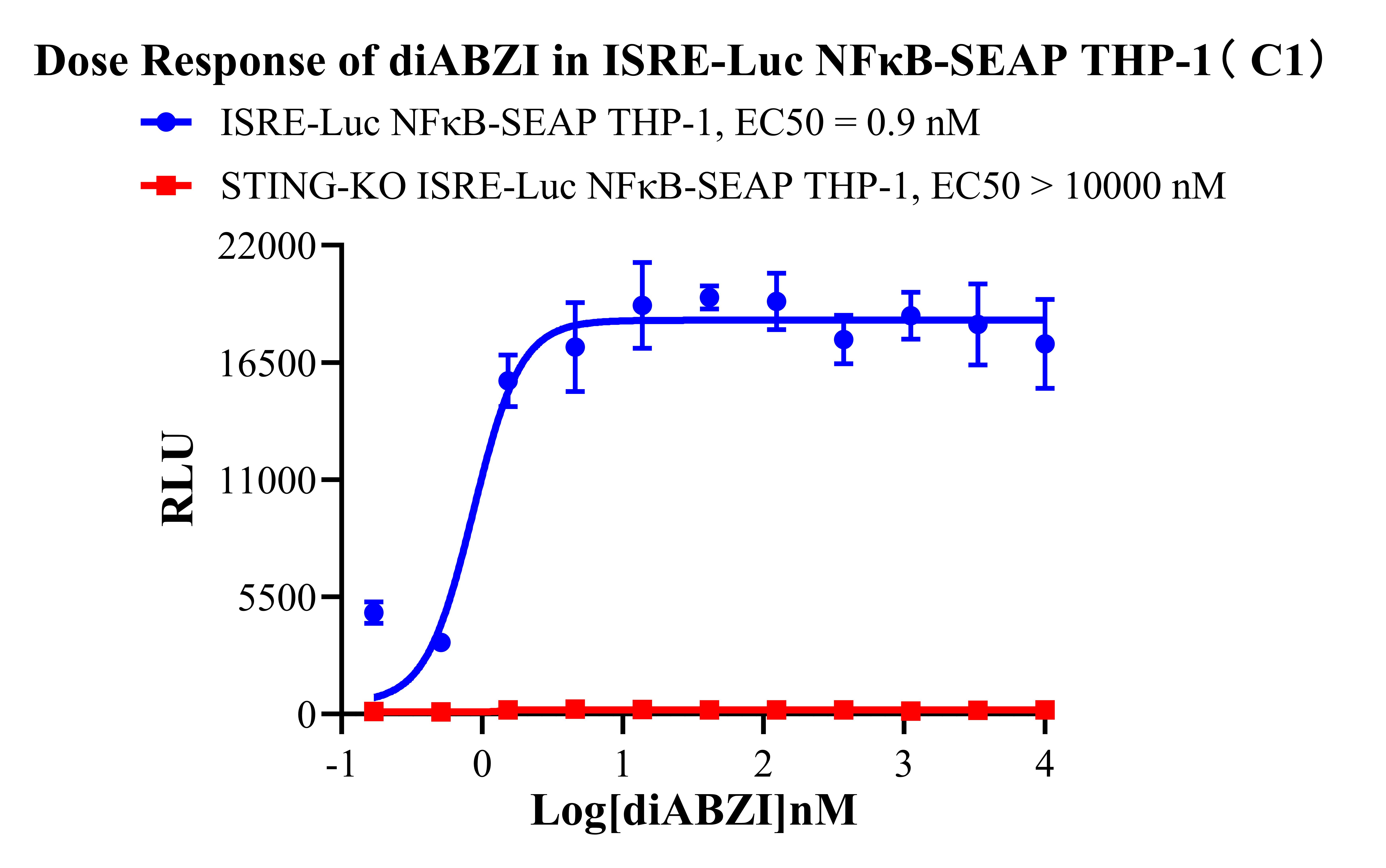 ![]() Figure 1. Dose Response of diABZI in ISRE-Luc NFκB-SEAP THP-1( C1). ![]() Figure 2. Dose Response of diABZI in ISRE-Luc NFκB-SEAP THP-1( C1). |