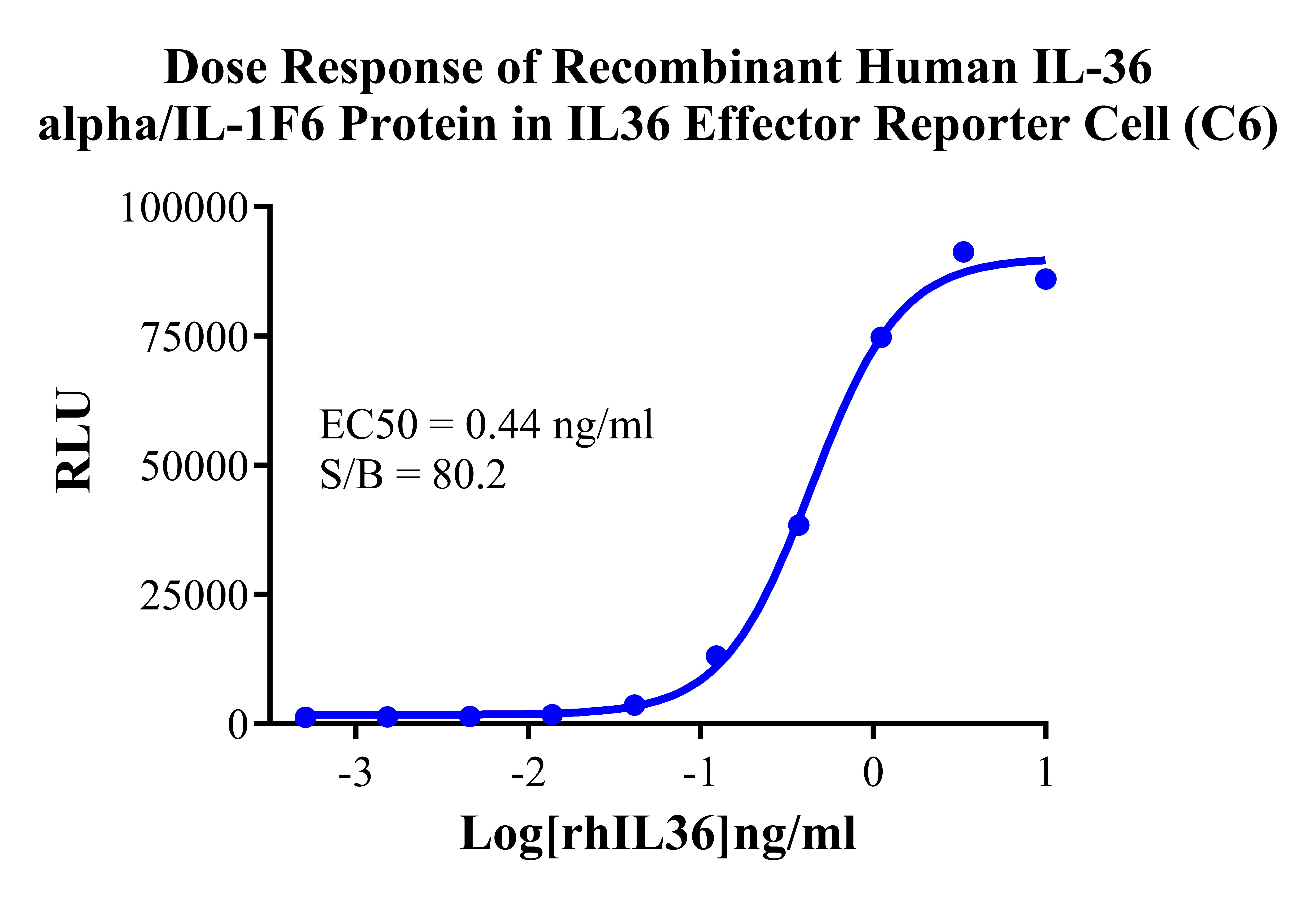 Figure 2. Dose Response of Recombinant Human IL-36 alpha/IL-1F6 Protein in IL36 Effector Reporter Cell(C6).
