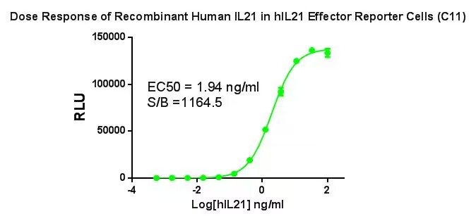 Figure 2.Dose Response of Recombinant Human IL21 in hIL21 Effector Reporter Cell (C11). |