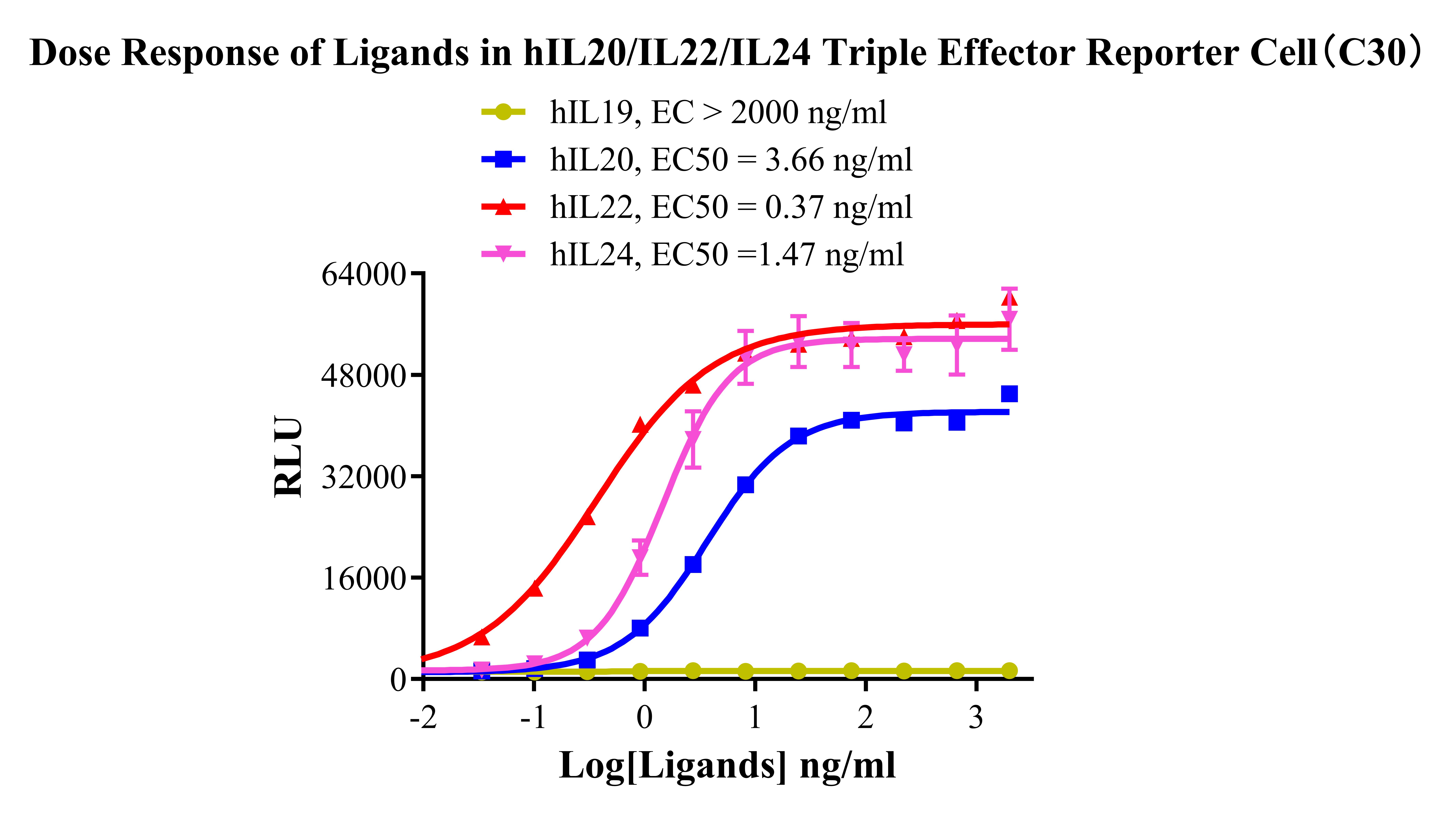 Figure 3. Dose Response of Ligands in hIL20/IL22/IL24 Triple Effector Reporter Cell(C30).