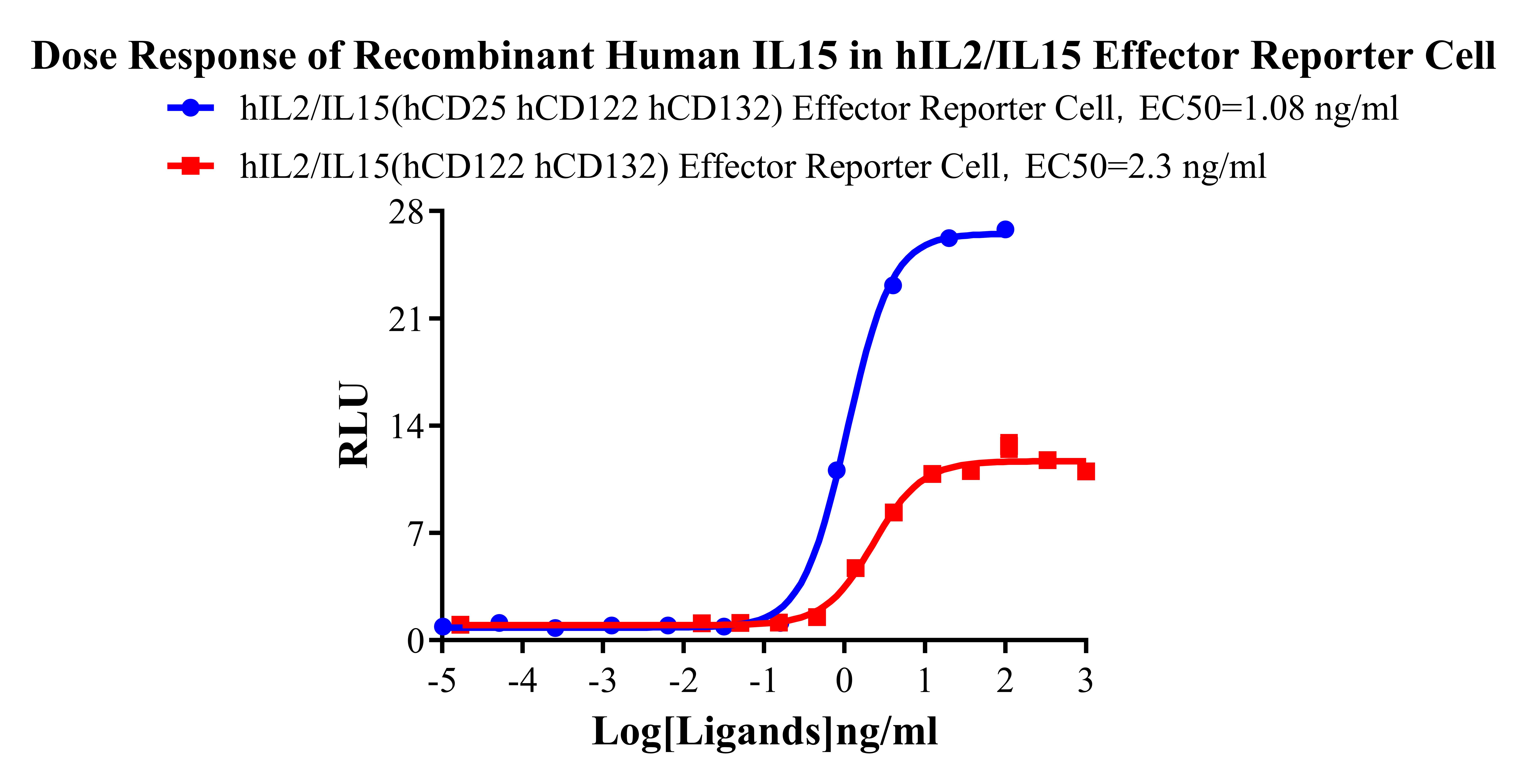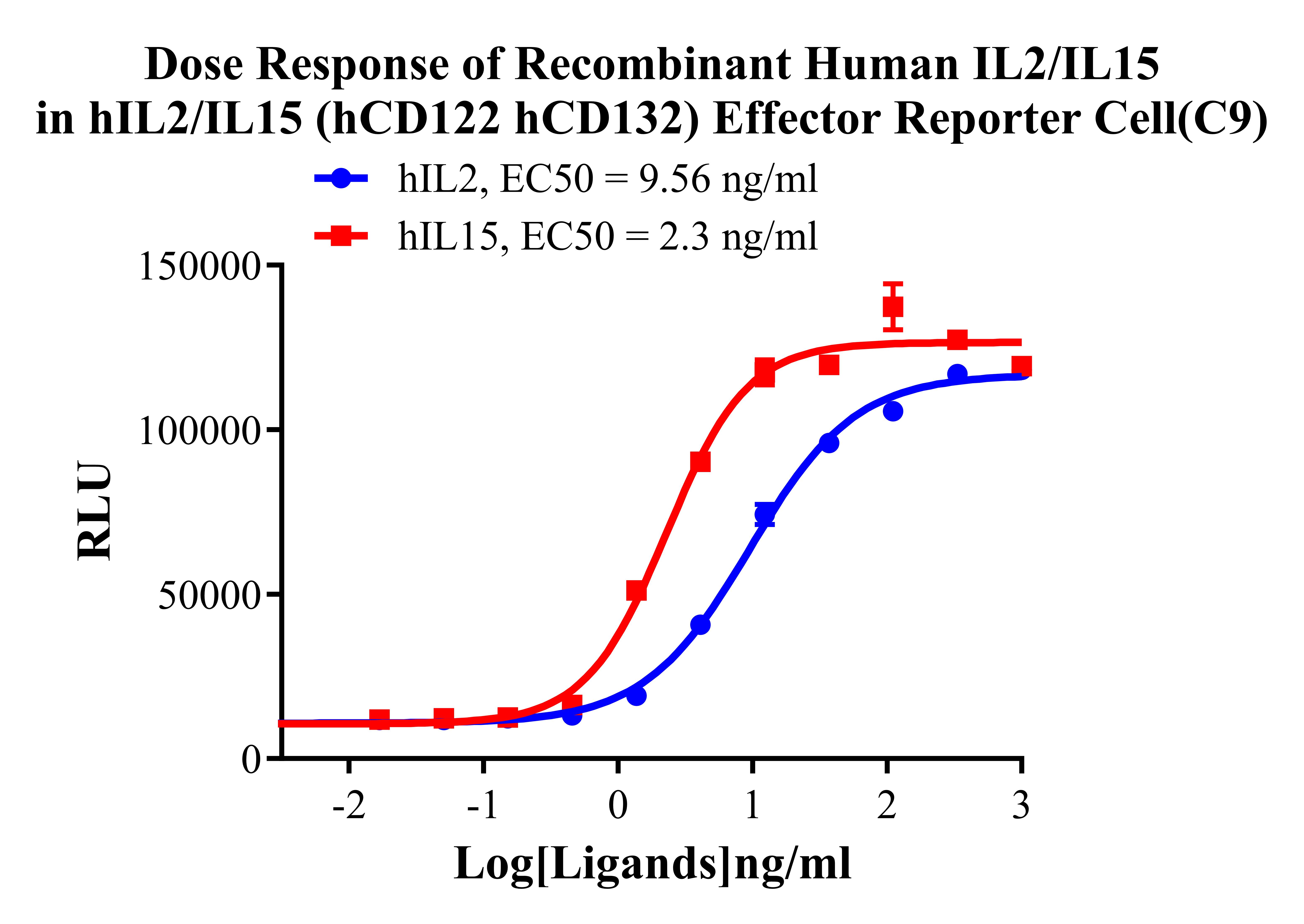 Figure 3. Dose Response of Recombinant Human IL2/IL15 in hlL2/IL15 Effector(hCD122/hCD132) Effector Reporter Cell (C9). |