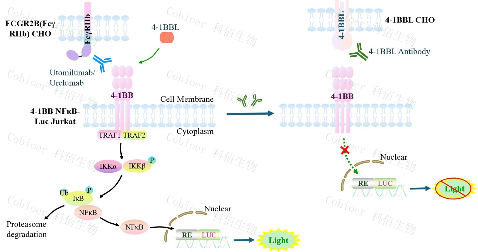 ![]() Figure 1. 4-1BB NFκB-Luc Jurkat 細胞模型原理圖 |