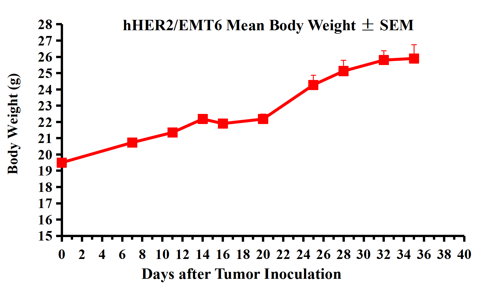 Figure 2. hHER2/EMT6 Mean Body Weight ± SEM.