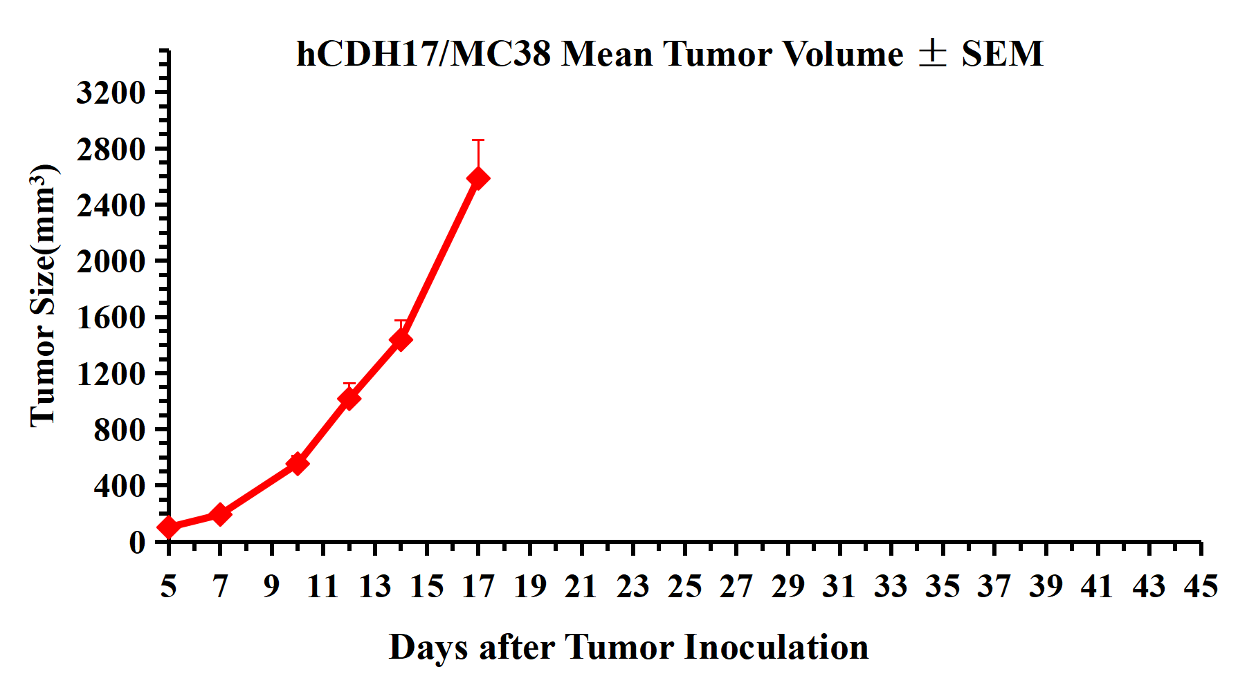 Figure 3.hCDH17/MC38 Mean Tumor Volume ± SEM.