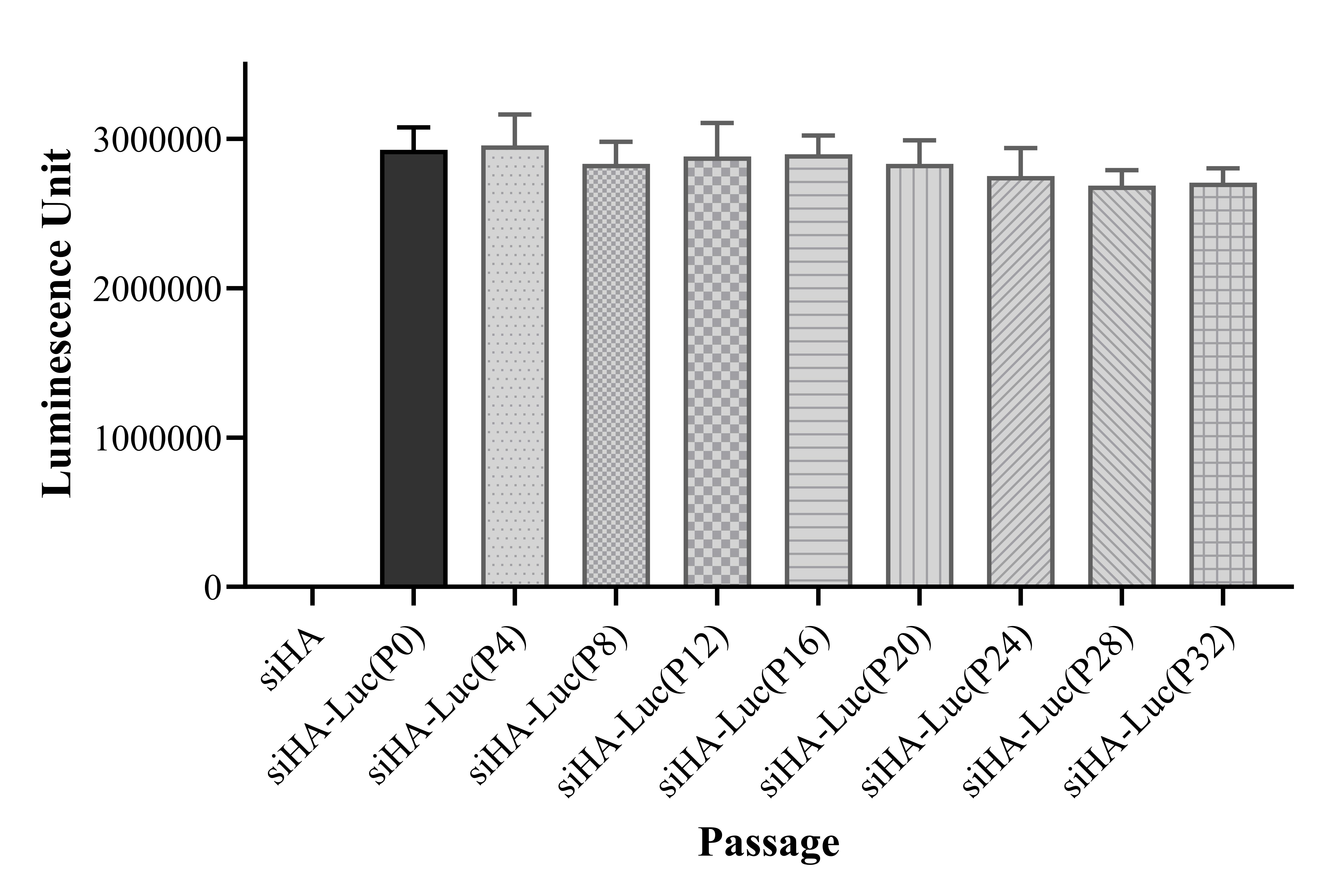 Figure 1. Stablity test results. SiHA-Luc showed at least 32 passage stability with similar luminescence unit. |