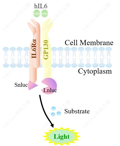 IL6RA&IL6ST Dimerization CHO 報告基因藥靶模型很好的模擬了體內(nèi) IL6 的信號轉(zhuǎn)導過程,原理見下圖所示。
