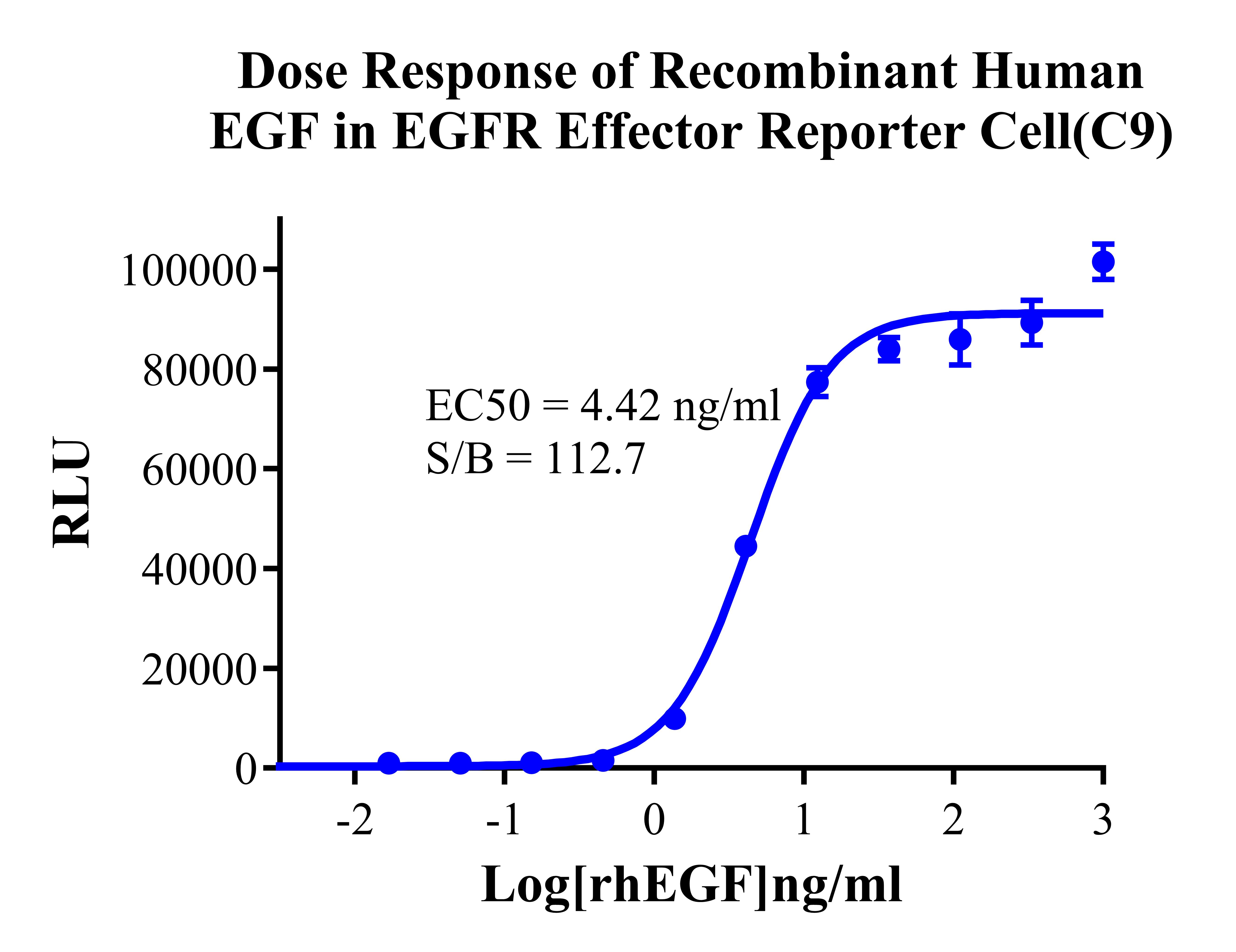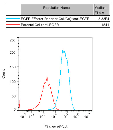 IV. Representative Data![]() Figure 2. Recombinant EGFR Effector Reporter Cell stably expressing EGFR. ![]() Figure 3. Dose Response of Recombinant Human EGF in EGFR Effector Reporter Cell (C9). ![]() Figure 4. Inhibition of rhEGF-induced Reporter Activity by EGFR Blocking Ab in EGFR Effector Reporter Cell (C9). Inhibition of rhEGF-induced Reporter Activity by EGFR Inhibitor in EGFR Effector Reporter Cell (C9). |
