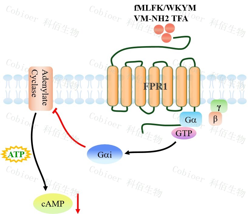 甲酰肽受體(FPR)屬于 G 蛋白偶聯(lián)受體(GPCR)家族,是趨化受體和模式識別受 體(PRR),可識別細菌和線粒體衍生的甲酰化肽。FPRs 家族包括三個成員(FPR1、 FPR2 和 FPR3),它們在多種組織和細胞類型中廣泛表達,調節(jié)多種生物功能,如血管生 成、細胞增殖和防止細胞死亡。 |