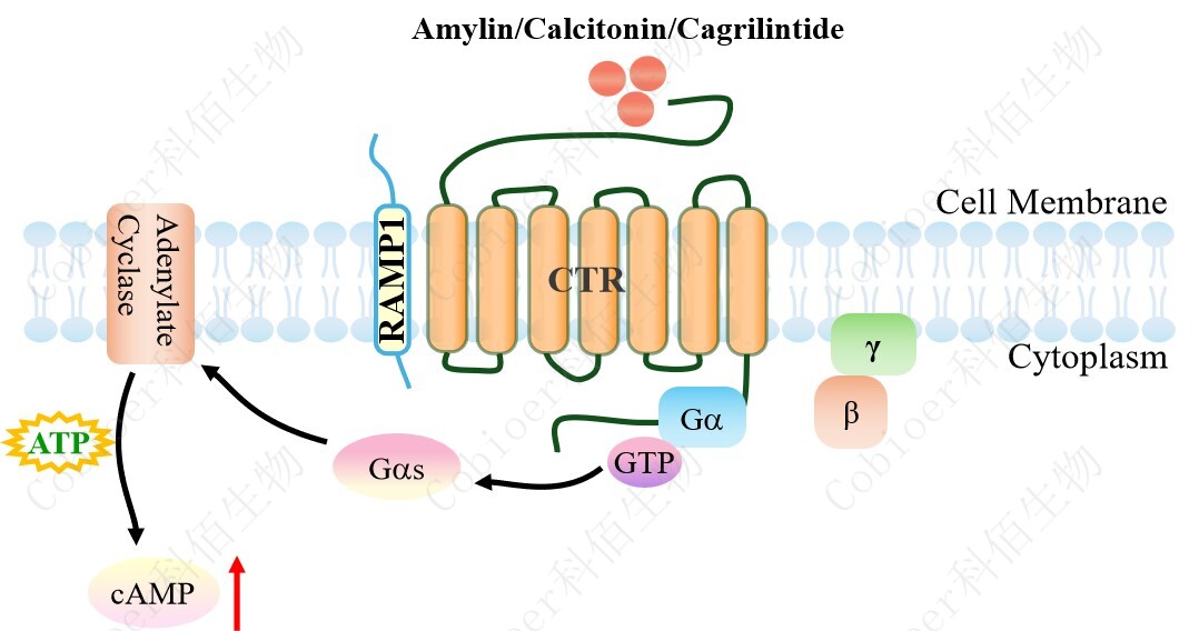 降鈣素基因相關肽(CGRP)家族包括 CGRP 本身、降鈣素(CT)、腎上腺髓質素 (AM)和胰島淀粉樣肽(AMY)。 胰淀素(Amylin)受體的三種類型的已被確定,即 AMY1,AMY2 和 AMY3。 |
