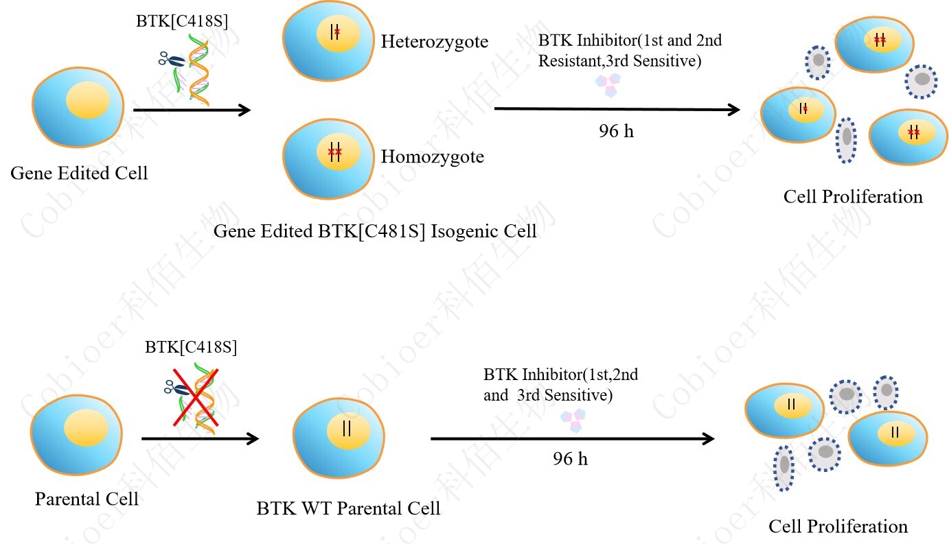 Gene Edited BTK[C481S] Isogenic Cell 藥靶細(xì)胞,通過基因編輯的方式 將 BTK 的 481 位氨基酸半胱氨酸(C)突變?yōu)榻z氨酸(S)。