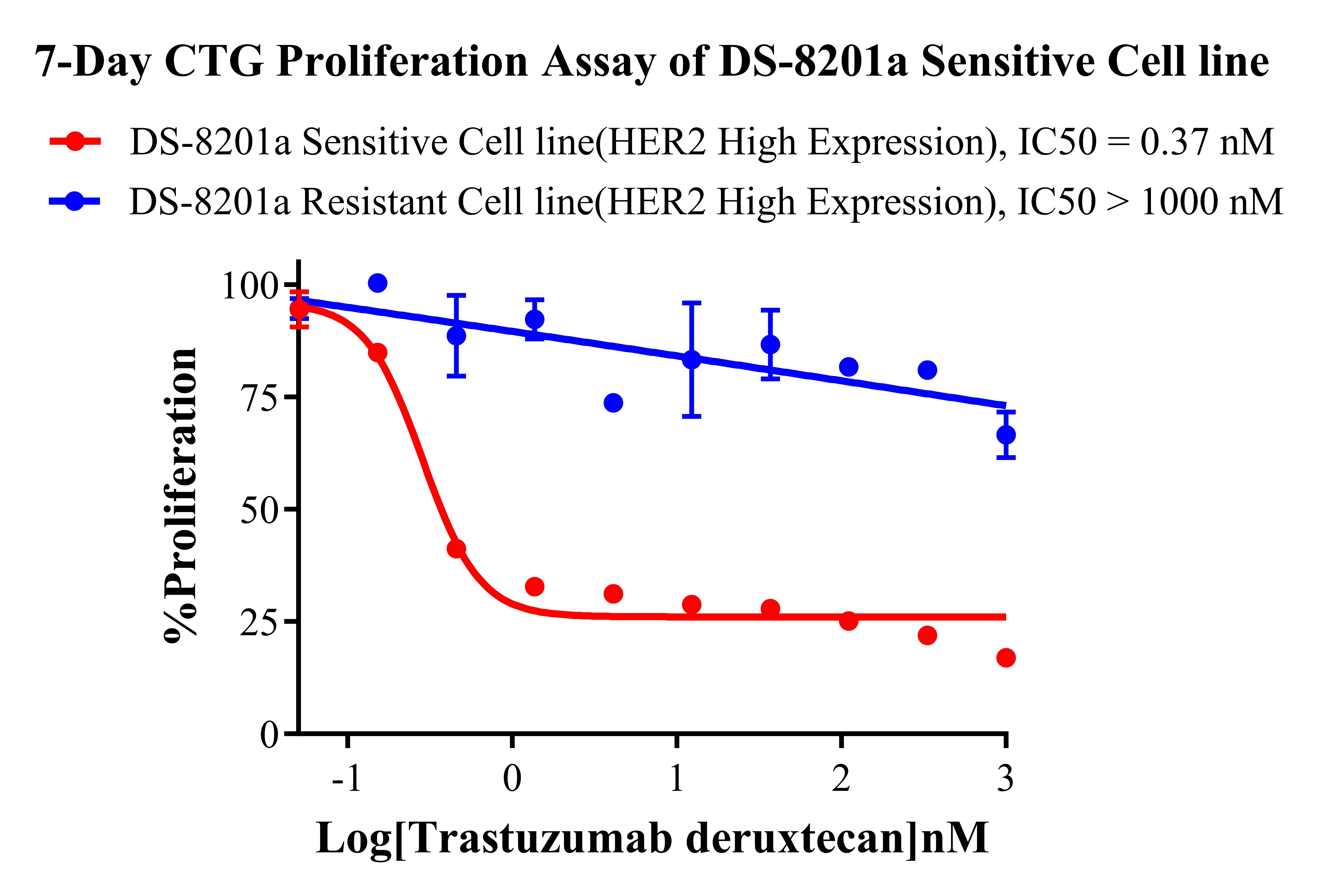 Figure 2. 7-Day CTG Proliferation Assay of DS-8201a Sensitive Cell line. |