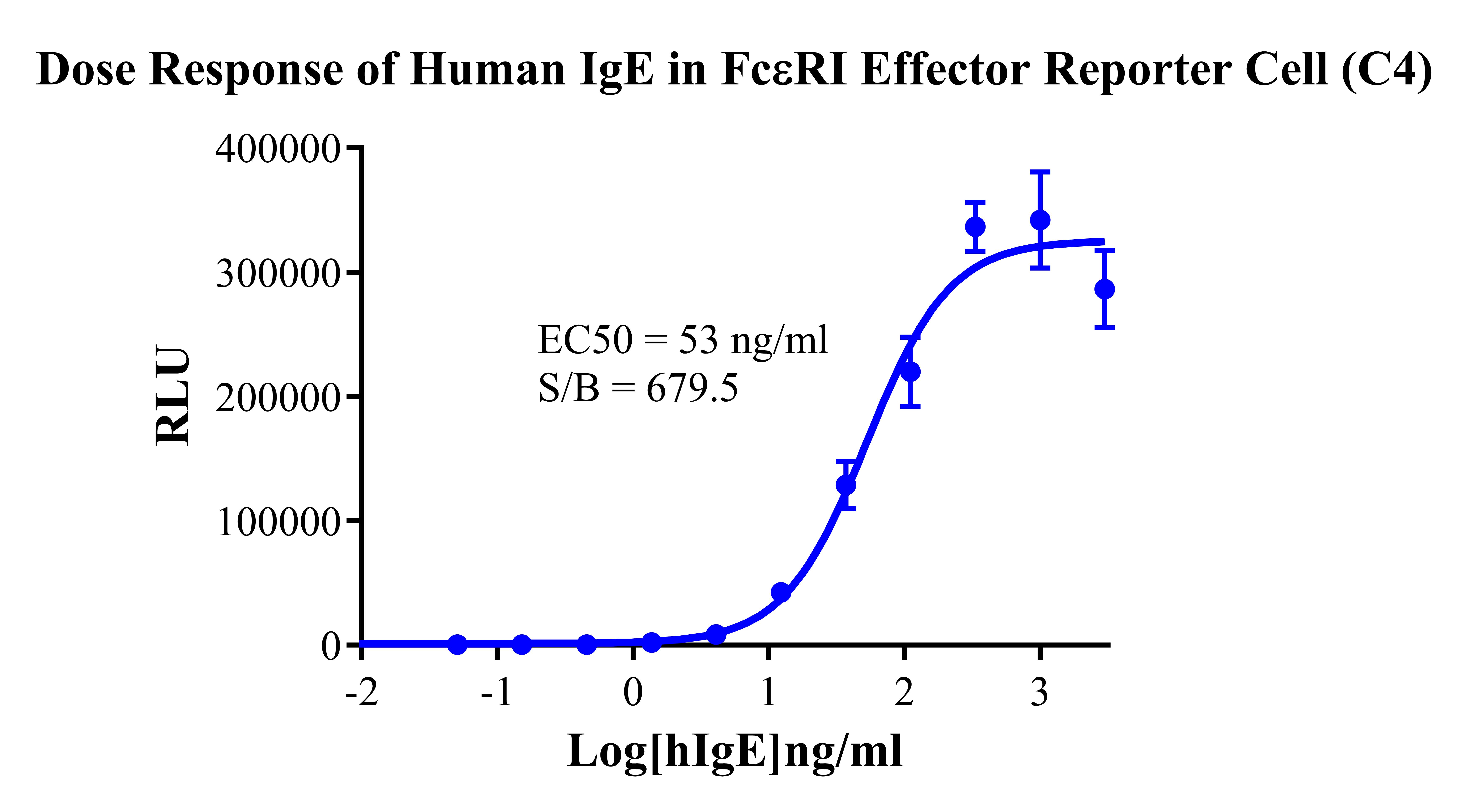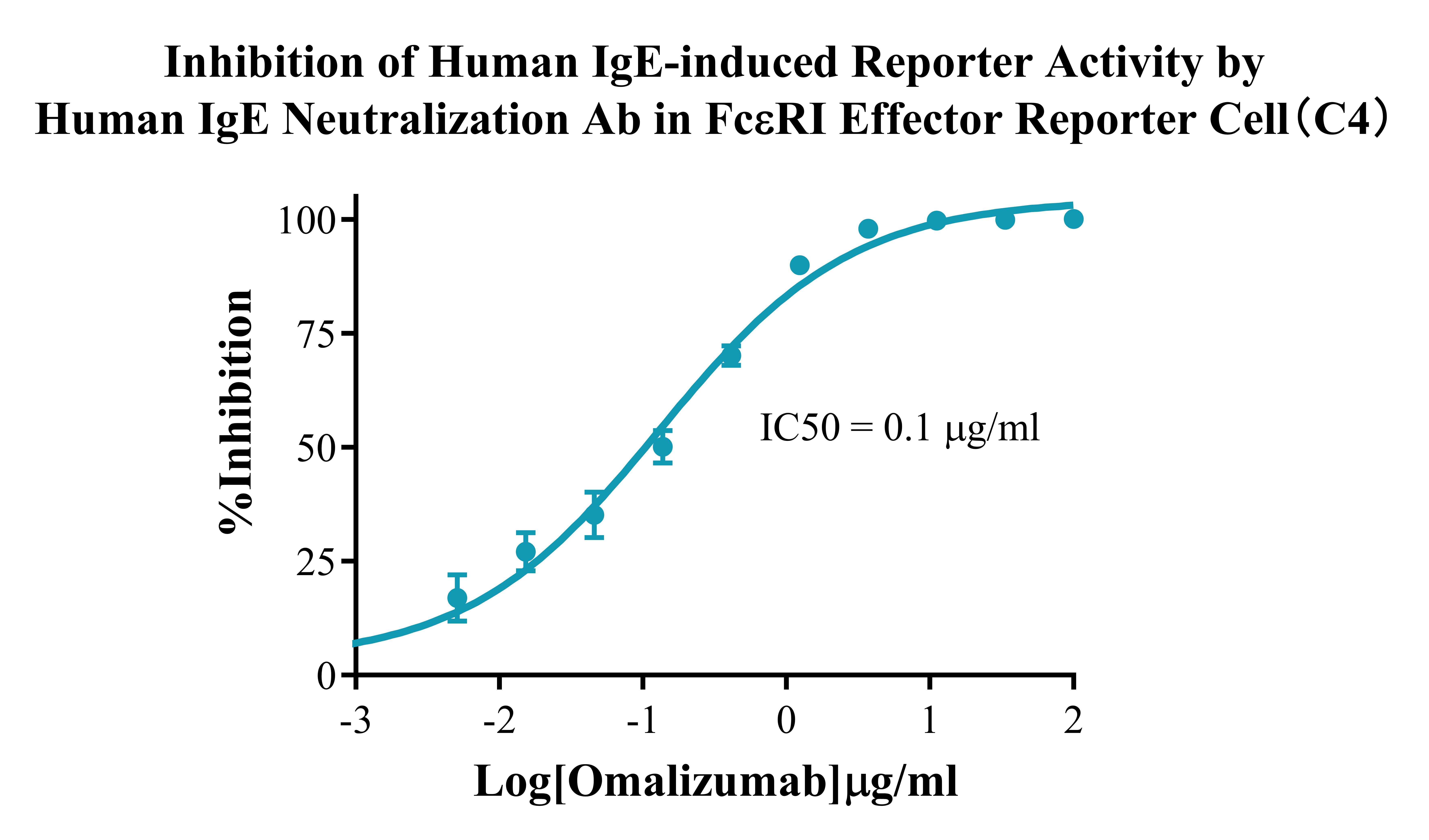 IV. Representative Data![]() Figure 2. Recombinant FcεRI Effector Reporter Cell stably expressing FcεRI. ![]() Figure 3. Dose Response of Human IgE in FcεRI Effector Reporter Cell(C4). ![]() Figure 4. Inhibition of Human IgE-induced Reporter Activity by Human IgE Neutralization Ab in FcεRI Effector Reporter Cell(C4). |
