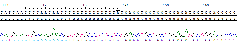 Figure 1. Sanger sequencing revealed ESR1 Y537S mutation, TAT-TCT. |