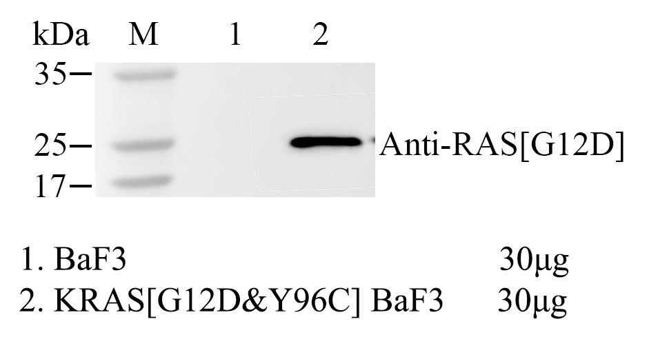 1.WB of KRAS [G12D&Y96C] BaF3 Figure 2. WB of KRAS [G12D&Y96C] BaF3 2.Sanger of KRAS [G12D&Y96C] BaF3 |