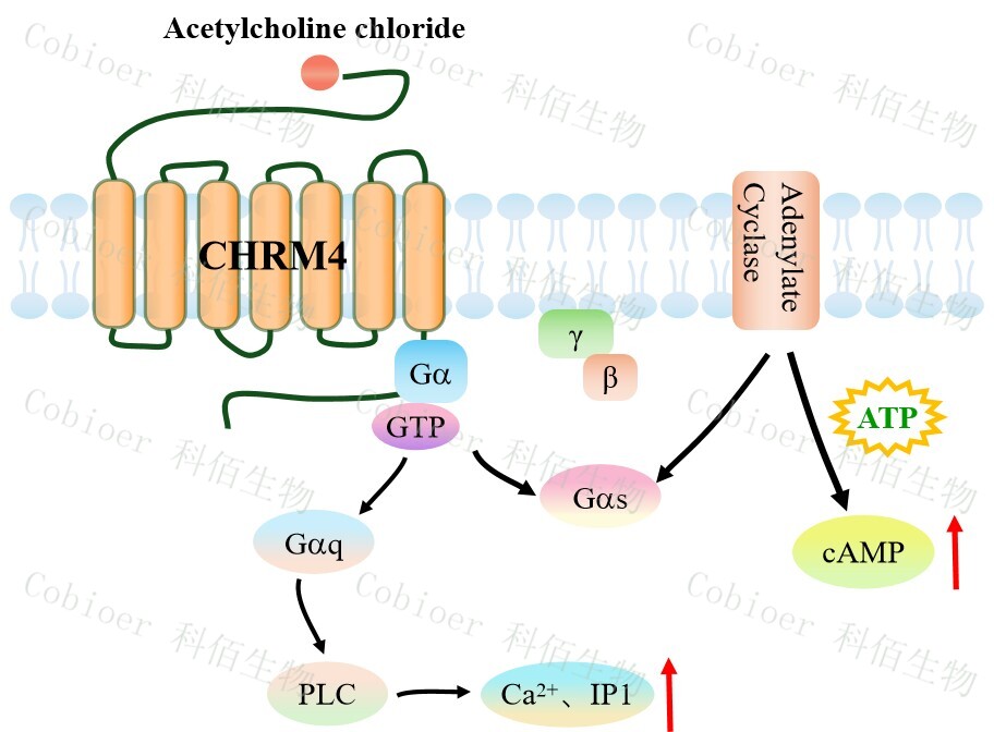 | 毒蕈堿乙酰膽堿受體(MAChRs,簡(jiǎn)稱(chēng) M 受體)參與中樞神經(jīng)系統(tǒng)的運(yùn)動(dòng)控制、體溫 調(diào)節(jié)、心血管調(diào)節(jié)和記憶,介導(dǎo)周?chē)窠?jīng)系統(tǒng)的平滑肌收縮、腺體分泌和心率、調(diào)節(jié)心肌 收縮力。CHRM4 作為 Gi/o 偶聯(lián)型毒蕈堿受體,中樞神經(jīng)系統(tǒng)高表達(dá),其內(nèi)源性配體乙酰 膽堿(ACh)激活后優(yōu)先通過(guò) Gi/oα亞基抑制腺苷酸環(huán)化酶,同時(shí)釋放 Gβγ二聚體。 | |