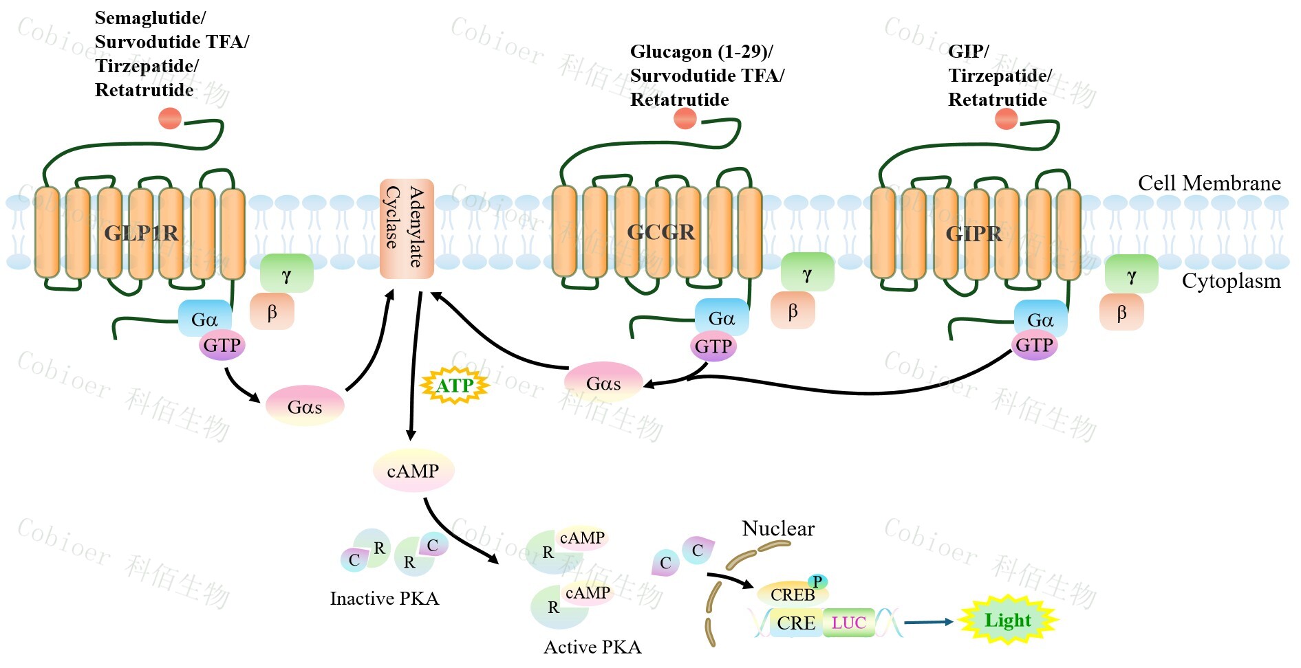 Figure 1. GLP1R&GCGR&GIPR Triple Reporter Cell 細(xì)胞模型原理圖