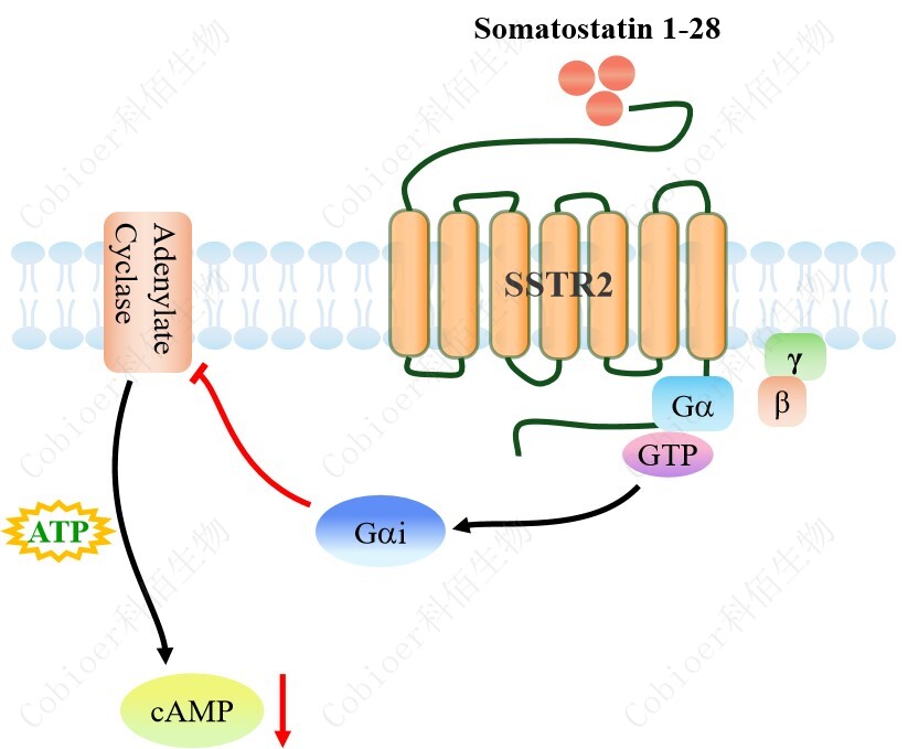 生長抑素受體(Somatostatin receptor,SSTRs)是 GPCR 超家族中的 class A 家族的成 員,共有 5 種亞型,分別為 SSTR1-SSTR5,其中 SSTR2 是唯一一種有 SSTR2a 和 SSTR2b 這 2 種異構(gòu)體的 SSTR 亞型受體蛋白。SSTR2 廣泛分布于正常組織中,如腦下垂體、胰島、 腎上腺、胸腺、胃腸道以及免疫系統(tǒng)等,在不同受體的組織,表達(dá)譜各不相同。 |
