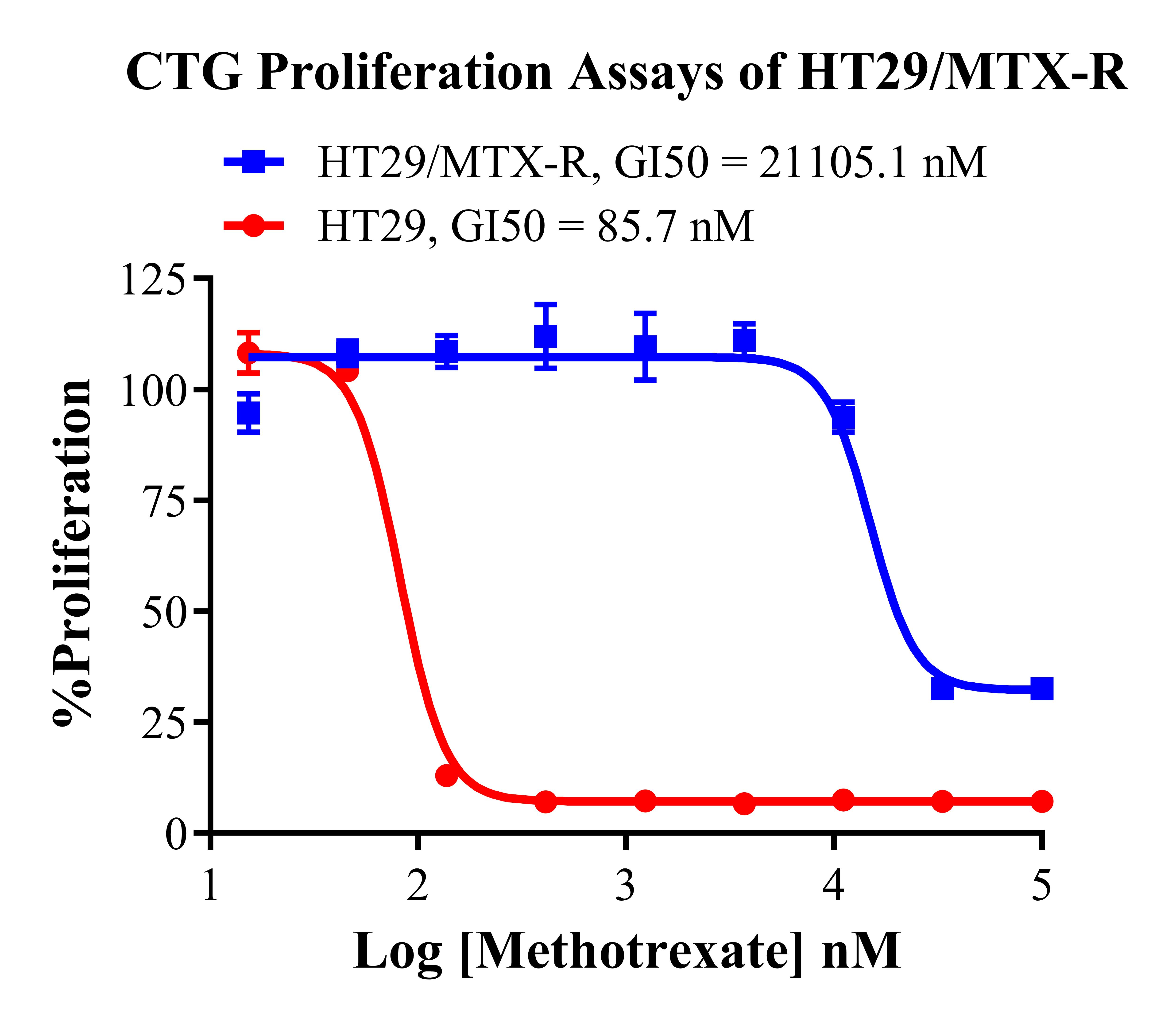 Figure 1. CTG Proliferation Assays of HT29/MTX-R. |