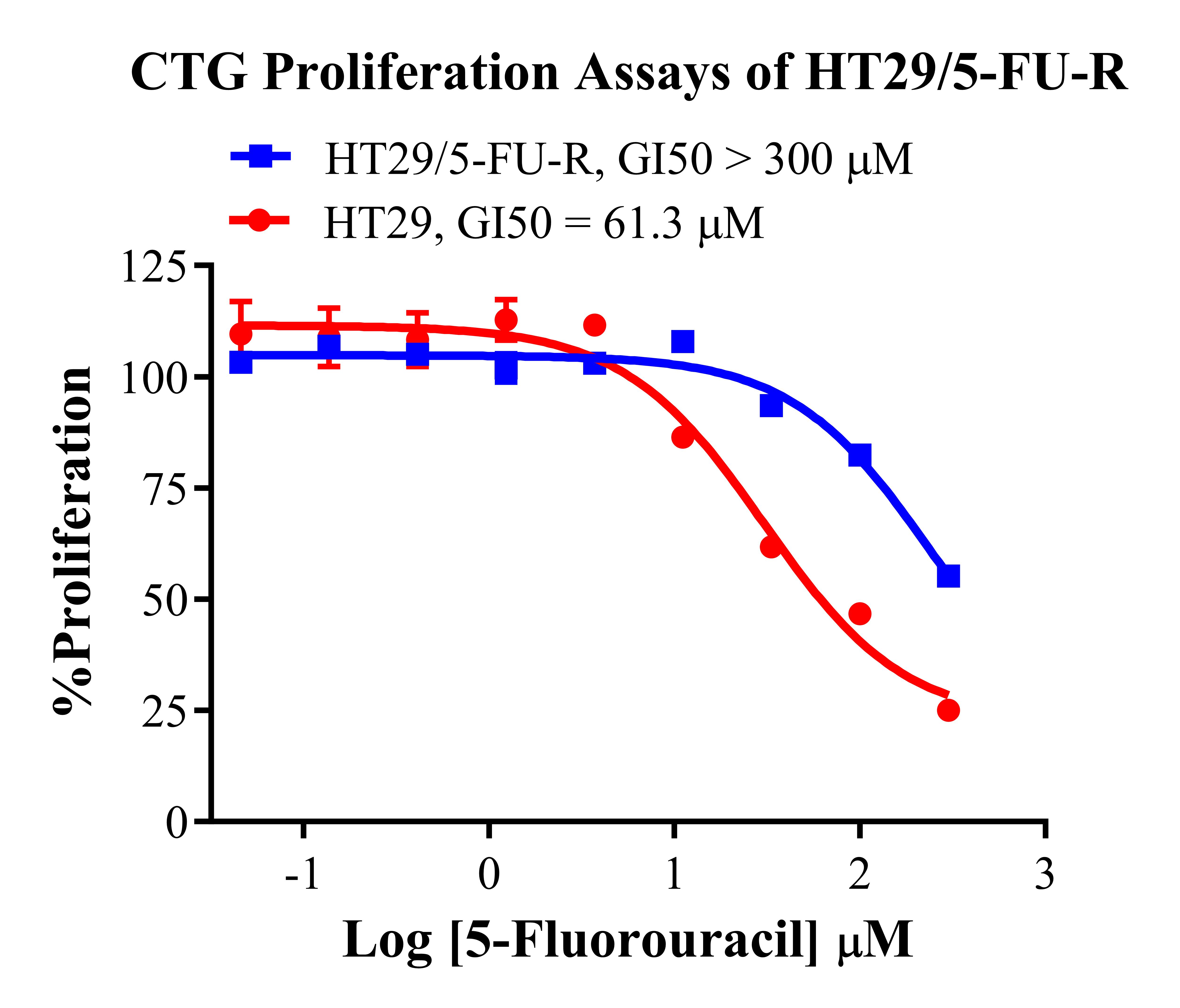 Figure 1. CTG Proliferation Assays of HT29/5-FU-R. |