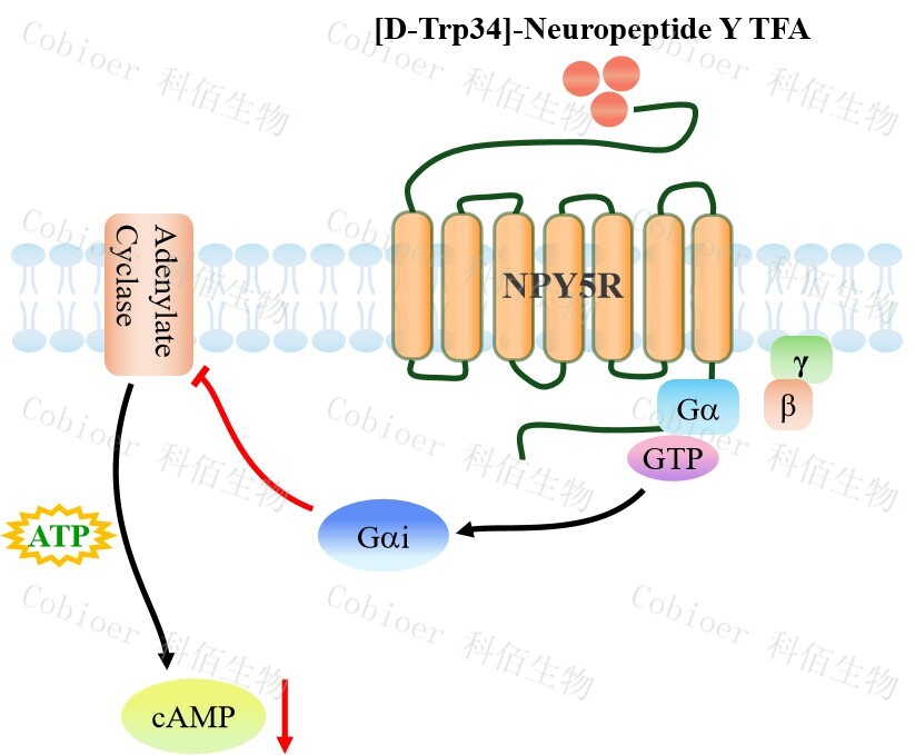 神經(jīng)肽 Y(NPY)作為一種重要的神經(jīng)遞質,廣泛分布于脊椎動物的中樞神經(jīng)系統(tǒng)和 周圍神經(jīng)系統(tǒng)。通過與不同的亞型受體結合,NPY 激活信號轉導通路,從而調節(jié)攝食 、能 量平衡、焦慮、晝夜節(jié)律和其他生理過程。NPY 受體(NPYR)屬于 G 蛋白偶聯(lián)受體家族, 目前在哺乳動物中已鑒定出 5 種受體基因亞型,即 NPY1R、NPY2R、NPY4R、NPY5R 和 NPY6R。 NPY5R 主要響應內源性配體神經(jīng)肽 Y(NPY)、肽 YY(PYY)及胰腺多肽(PP), 通過偶聯(lián) Gi/o 蛋白抑制腺苷酸環(huán)化酶活性、降低細胞內 cAMP 水平,同時激活 MAPK/ ERK 通路并動員鈣離子信號,在下丘腦攝食中樞、情緒調節(jié)環(huán)路及能量代謝網(wǎng)絡中發(fā)揮核 心作用,其異常活化與肥胖、糖尿病及情緒障礙密切相關。 |