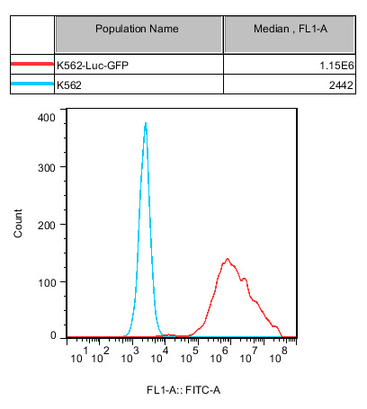 ![]() Figure 1. Recombinant K562-Luc-GFP constitutively expressing GFP. ![]() |