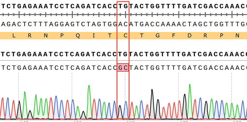 WRN[C727A](Homozygous,AF%:100) Isogenic HCT116 藥靶細(xì)胞,通過(guò) 基因編輯的方式將 WRN 的 727 位氨基酸胱氨酸(C)突變?yōu)楸彼幔ˋ)。![]() Figure 1. WRN[C727A](Homozygous,AF%:100) Isogenic HCT116 原理示意圖 |