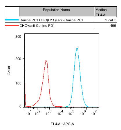 | Canine PD1 CHO 細(xì)胞,在 CHO-K1 細(xì)胞的基礎(chǔ)上,穩(wěn)定表達(dá)犬的 PD1。 | |