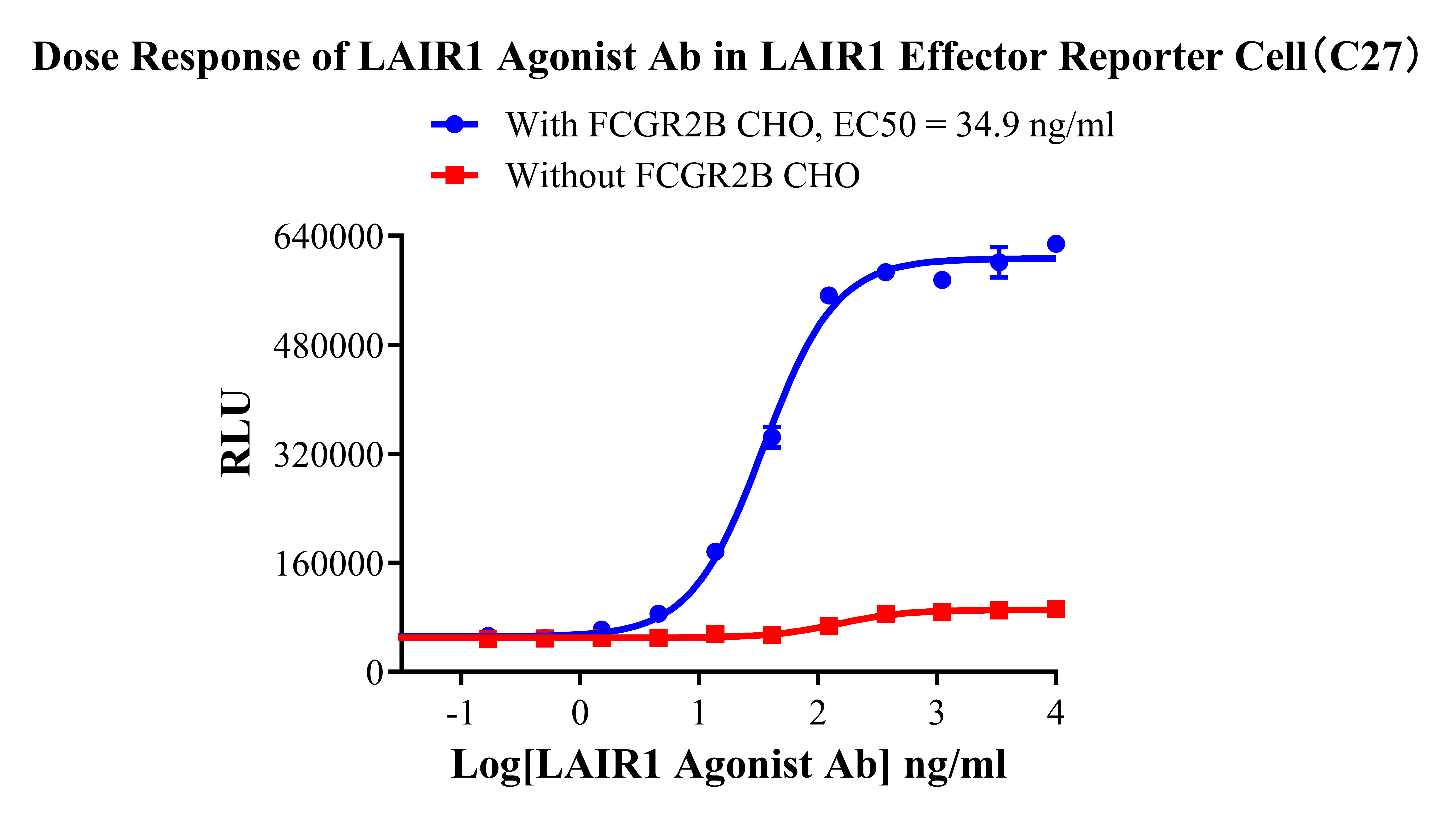 ![]() Figure 2. Recombinant LAIR1 Effector Reporter Cell stably expressing LAIR1. ![]() Figure 3. Dose Response of LAIRl Agonist Ab in LAIR1 Effector Reporter Cell(C27). |