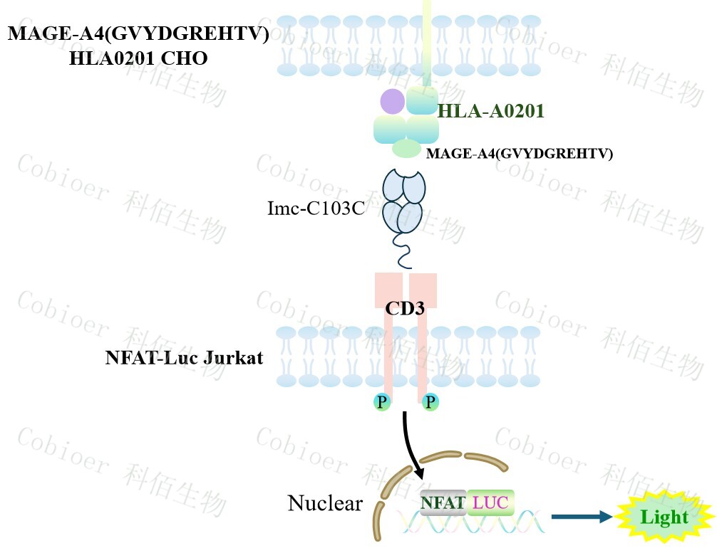 HLA-A*0201-MAGEA4 復(fù)合物是人類(lèi)白細(xì)胞抗原(HLA)Ⅰ類(lèi)分子與 MAGEA4 抗原肽的復(fù)合體,屬于主要組織相容性復(fù)合體(MHC)Ⅰ類(lèi)家族成員。該復(fù)合物常用于 T 細(xì)胞 受體(TCR)療法,通過(guò)激活 T 細(xì)胞以識(shí)別并殺傷腫瘤細(xì)胞,原理見(jiàn)下圖所示。![]() Figure 1. MAGE-A4(GVYDGREHTV) HLA0201 CHO 細(xì)胞模型圖 |