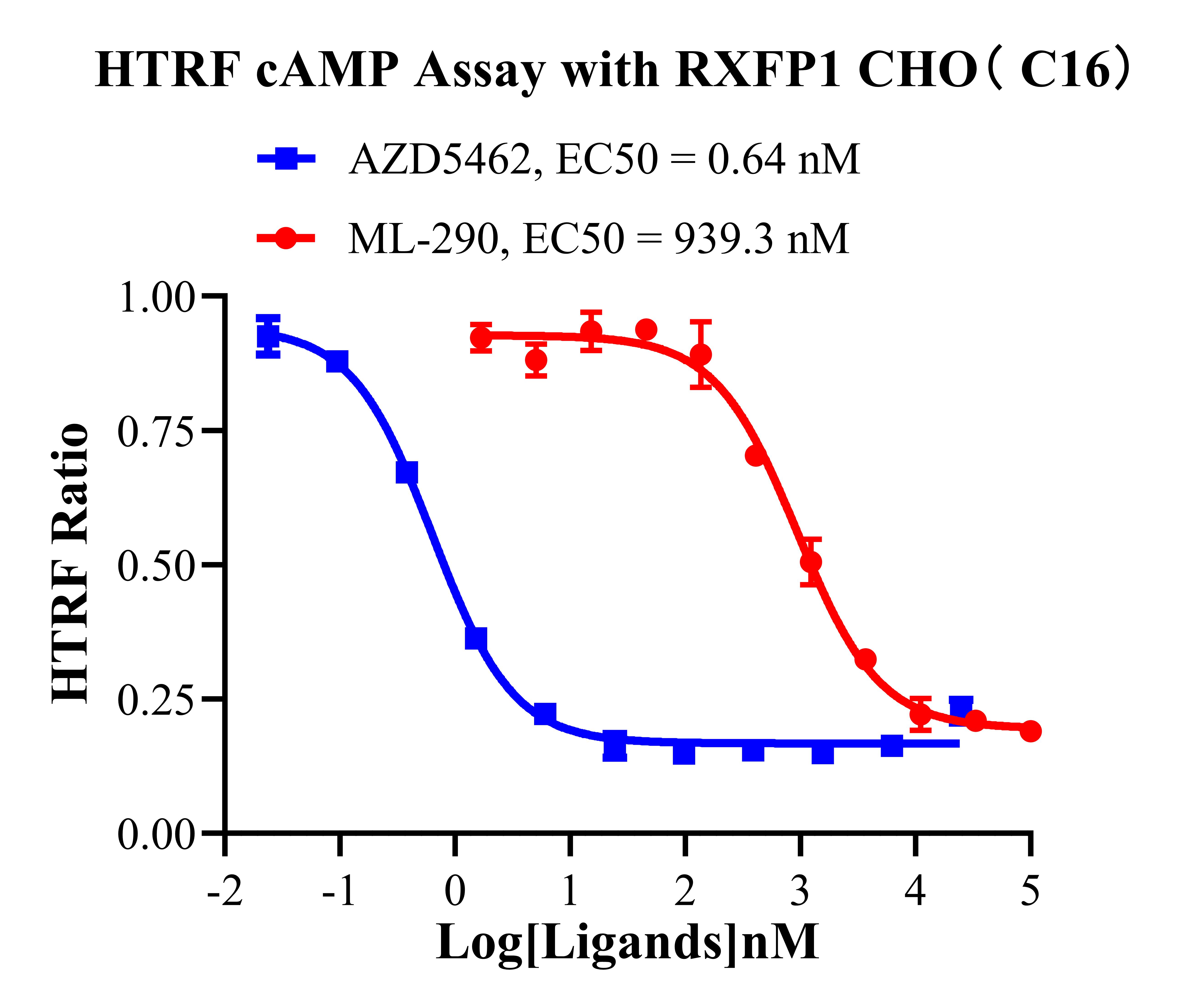 V. Representative Data![]() Figure 2. Recombinant RXFP1 CHO stably expressing RXFP1. ![]() Figure 3. HTRF CAMP Assay with RXFP1 CHO( C16). |