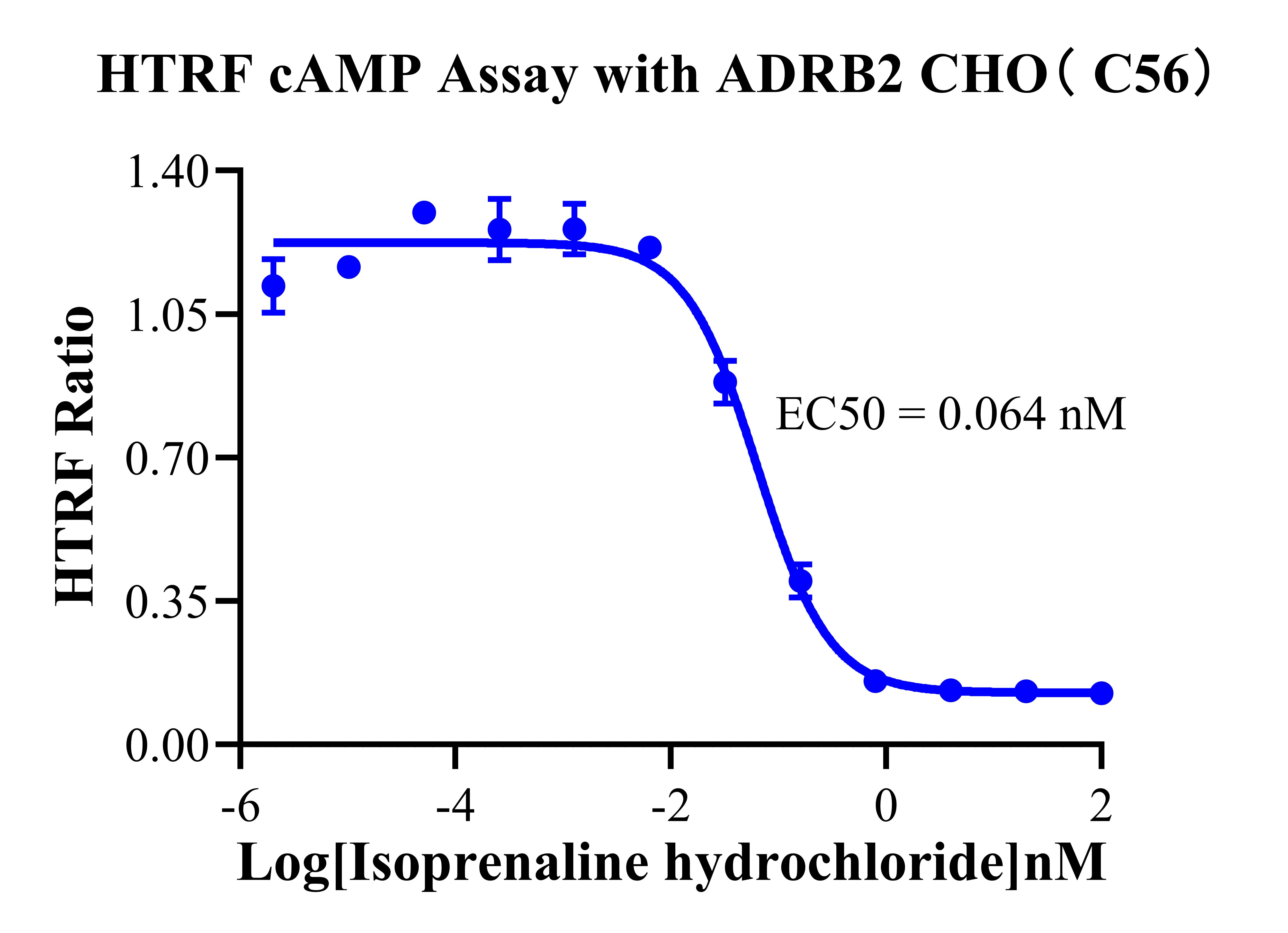 V. Representative Data![]() Figure 2. Recombinant ADRB2 CHO stably expressing ADRB2. ![]() Figure 3. HTRF cAMP Assay with ADRB2 CHO( C56). |