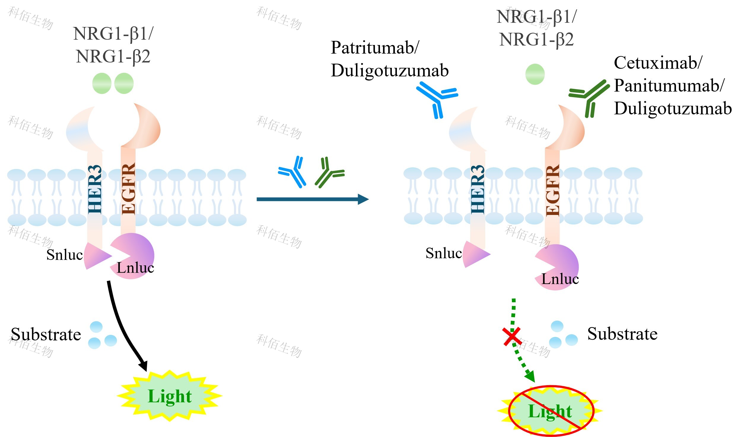EGFR&ERBB3 Dimerization CHO 報(bào)告基因藥靶模型很好的模擬了體內(nèi) EGFR&ERBB3 的信號轉(zhuǎn)導(dǎo)過程,原理見下圖所示。![]() Figure 1. EGFR&ERBB3 Dimerization CHO 細(xì)胞模型原理圖 |