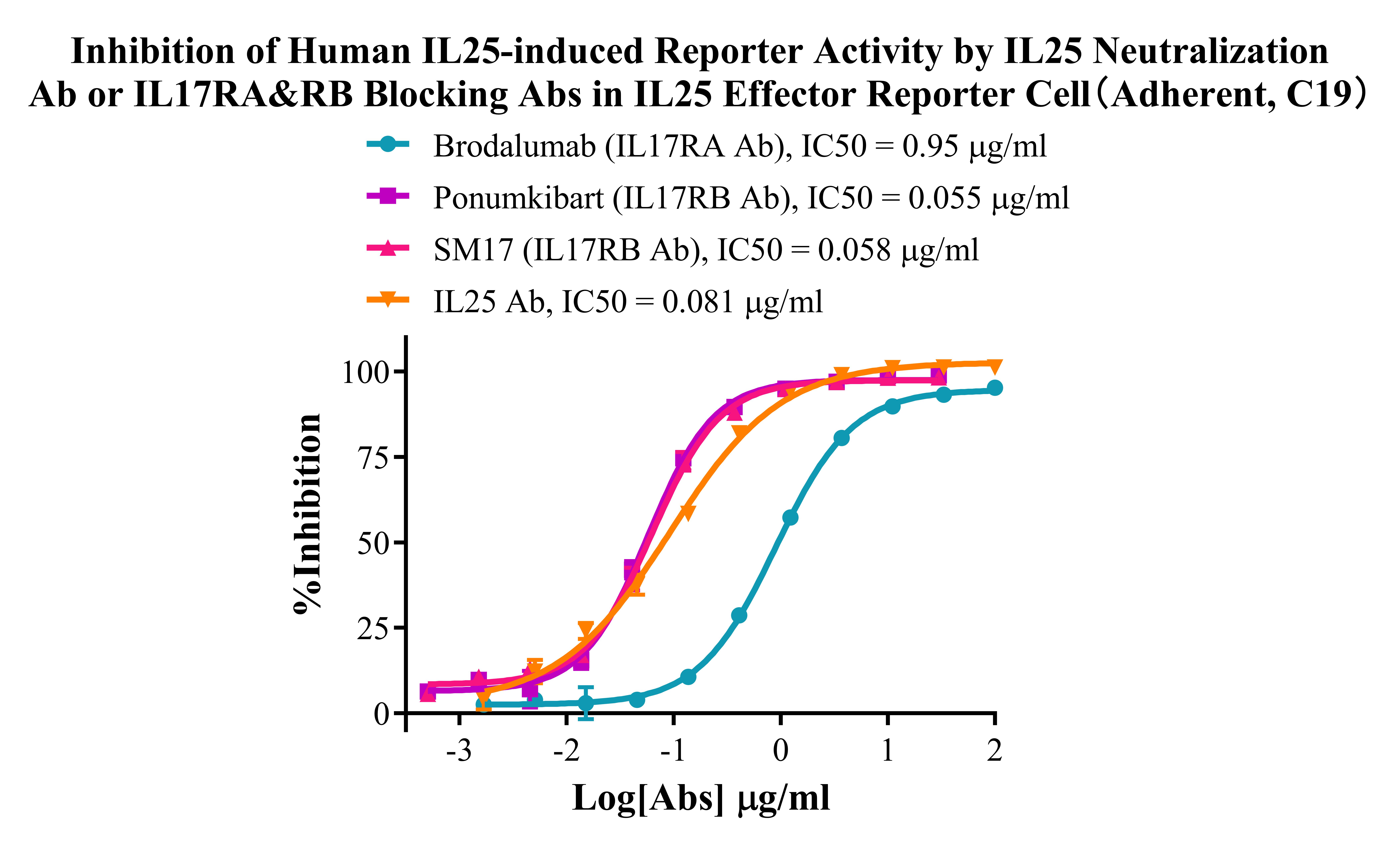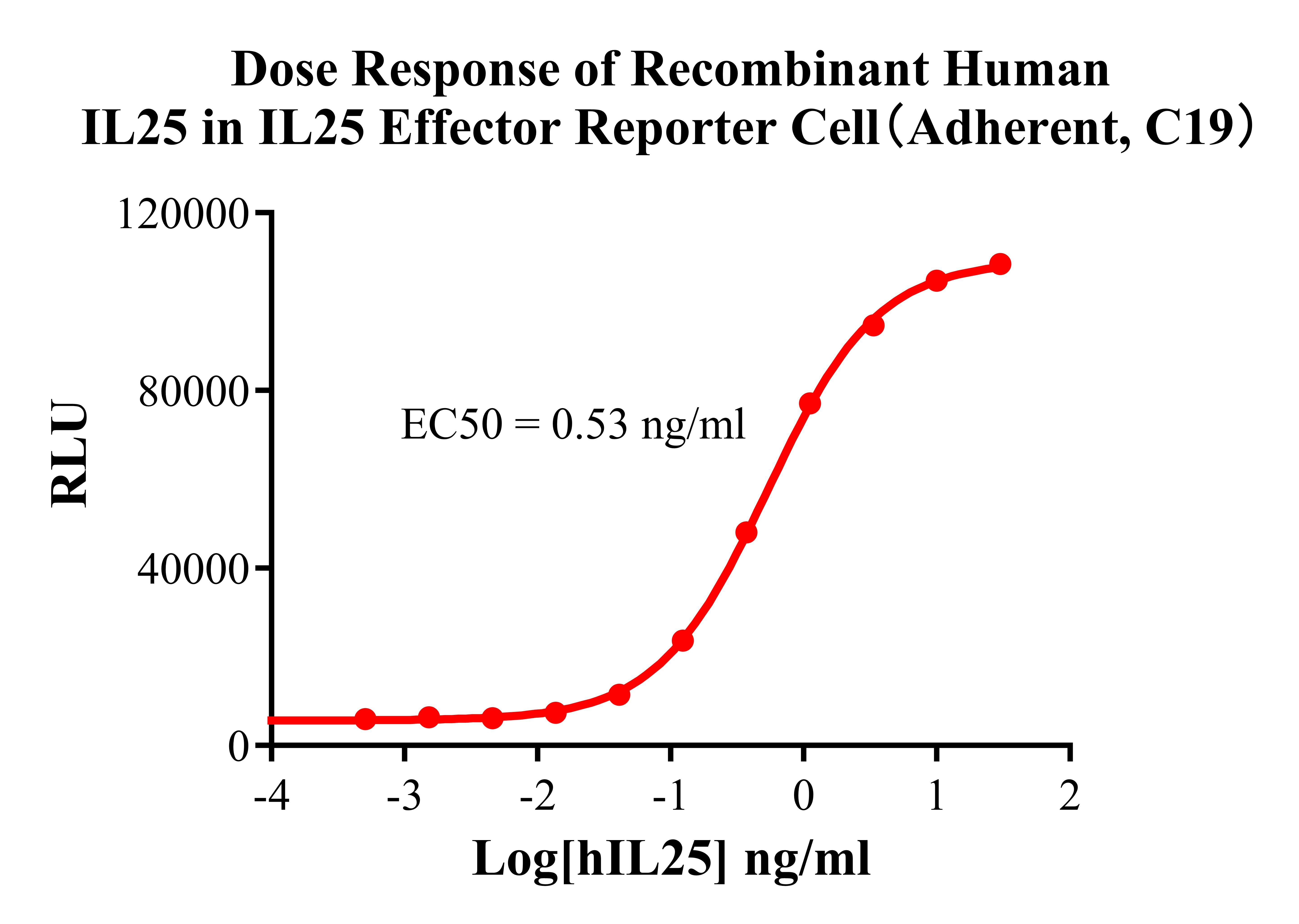![]() Figure 2. Recombinant IL25 Effector Reporter Cell(Adherent) stably expressing IL17RA & IL17RB. ![]() Figure 3. Dose Response of Recombinant Human IL25 in IL25 Effector Reporter Cell(Adherent, C19). ![]() Figure 4. Inhibition of Human IL25-induced Reporter Activity by IL25 Neutralization Ab or IL17RA&RB Blocking Abs in IL25 Effector Reporter Cell(Adherent, C19). |