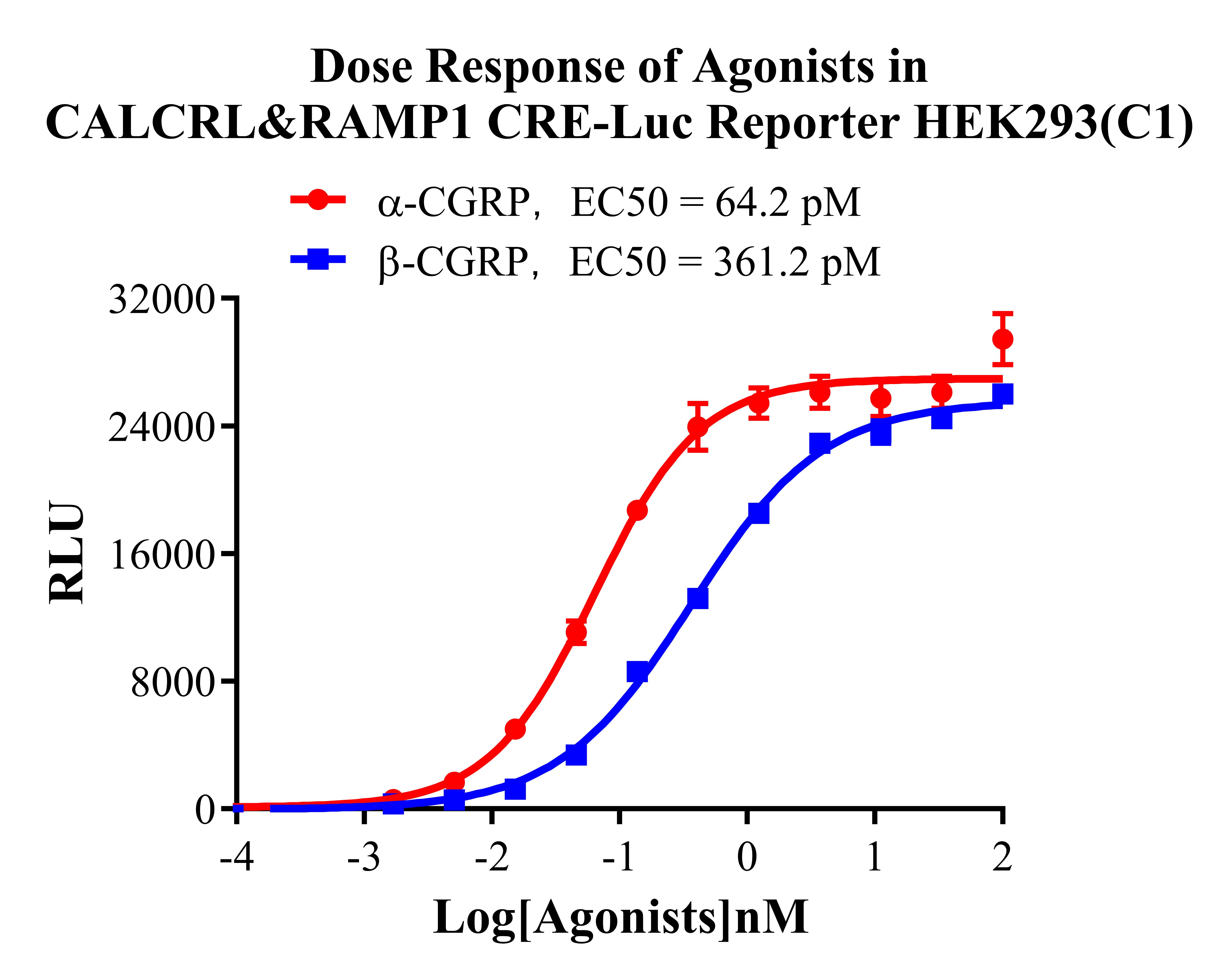Figure 2. Dose Response of Agonists in CALCRL&RAMP1 CRE Luc Reporter HEK293(C1).