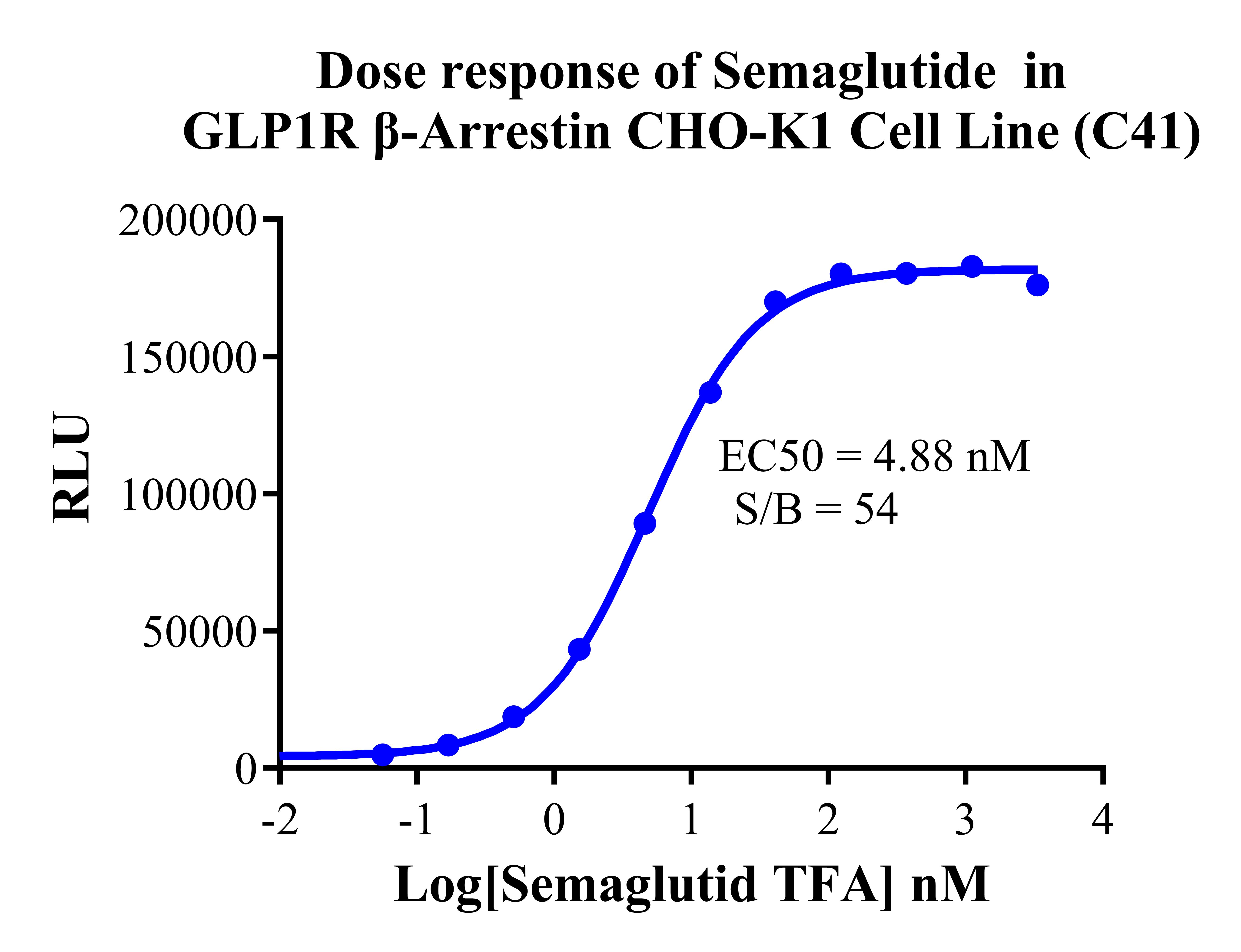 Figure 3. Dose response of Semaglutide in GLP1R β-Arrestin CHO-K1 Cell Line (C41). |