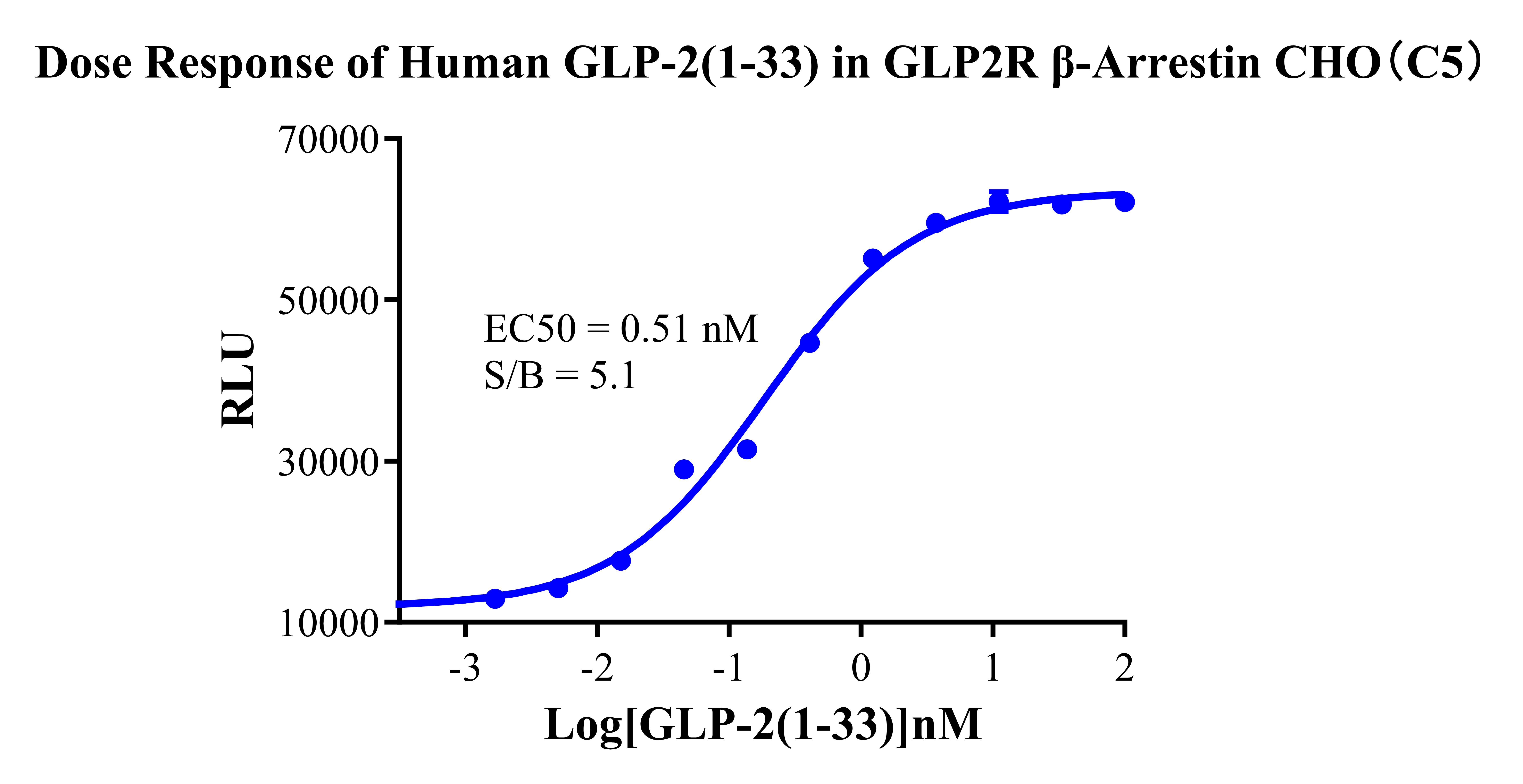 Figure 3. Dose response of Human GLP-2(1-33) in GLP2R β-Arrestin CHO-K1 Cell Line (C5). |