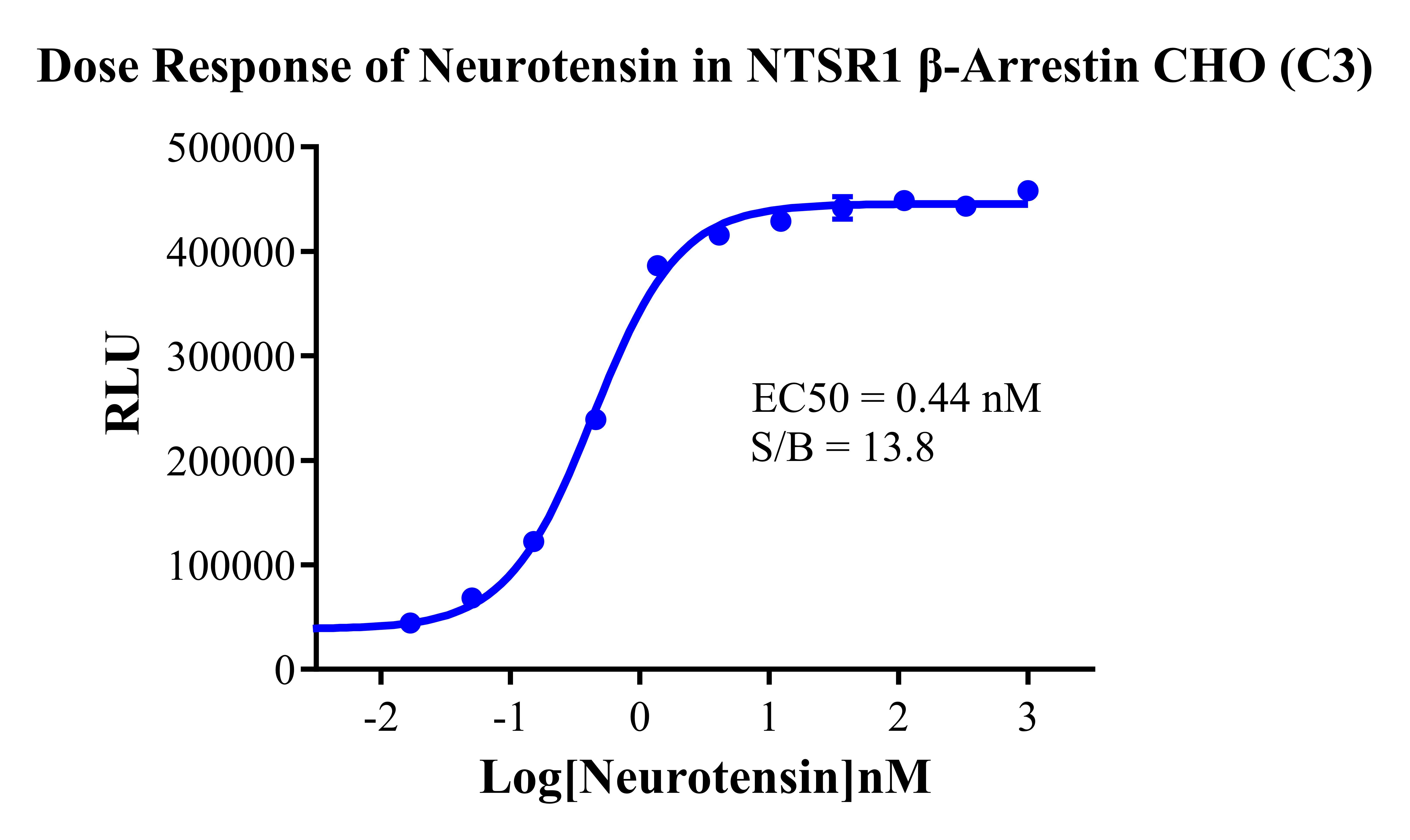 Figure 3. Dose response of Neurotensin in NTSR1 β-Arrestin CHO (C3). |
