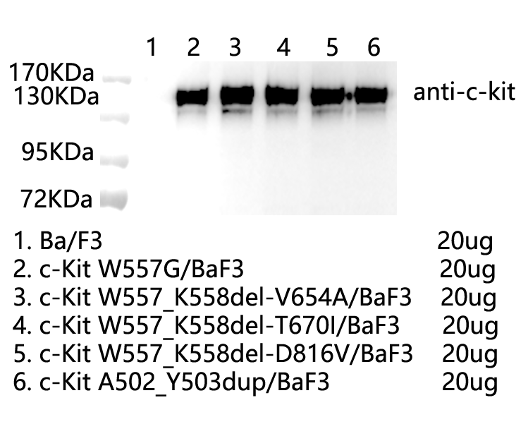 1.WB of c-Kit W557_K558del-T670I/BaF3