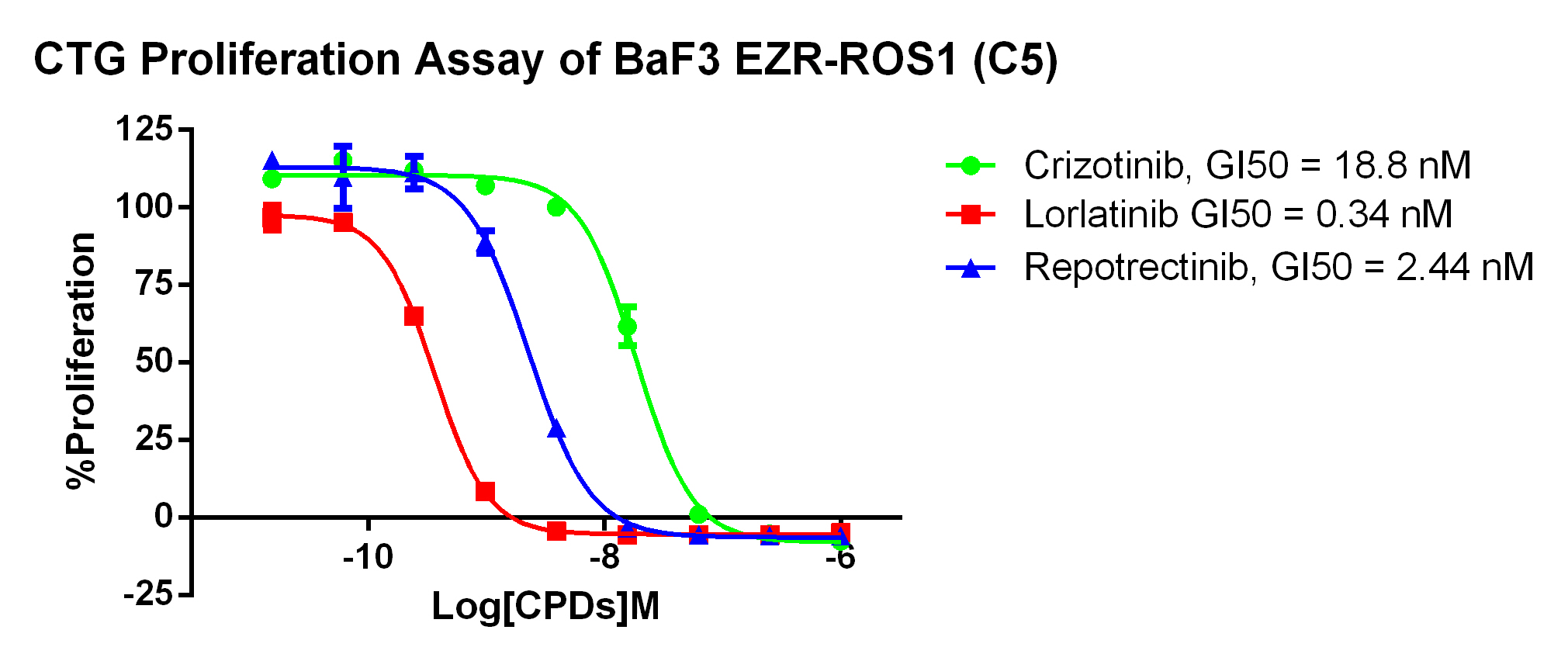 Figure 2. CTG Proliferation Assay of BaF3 EZR-ROS1 (C5). |