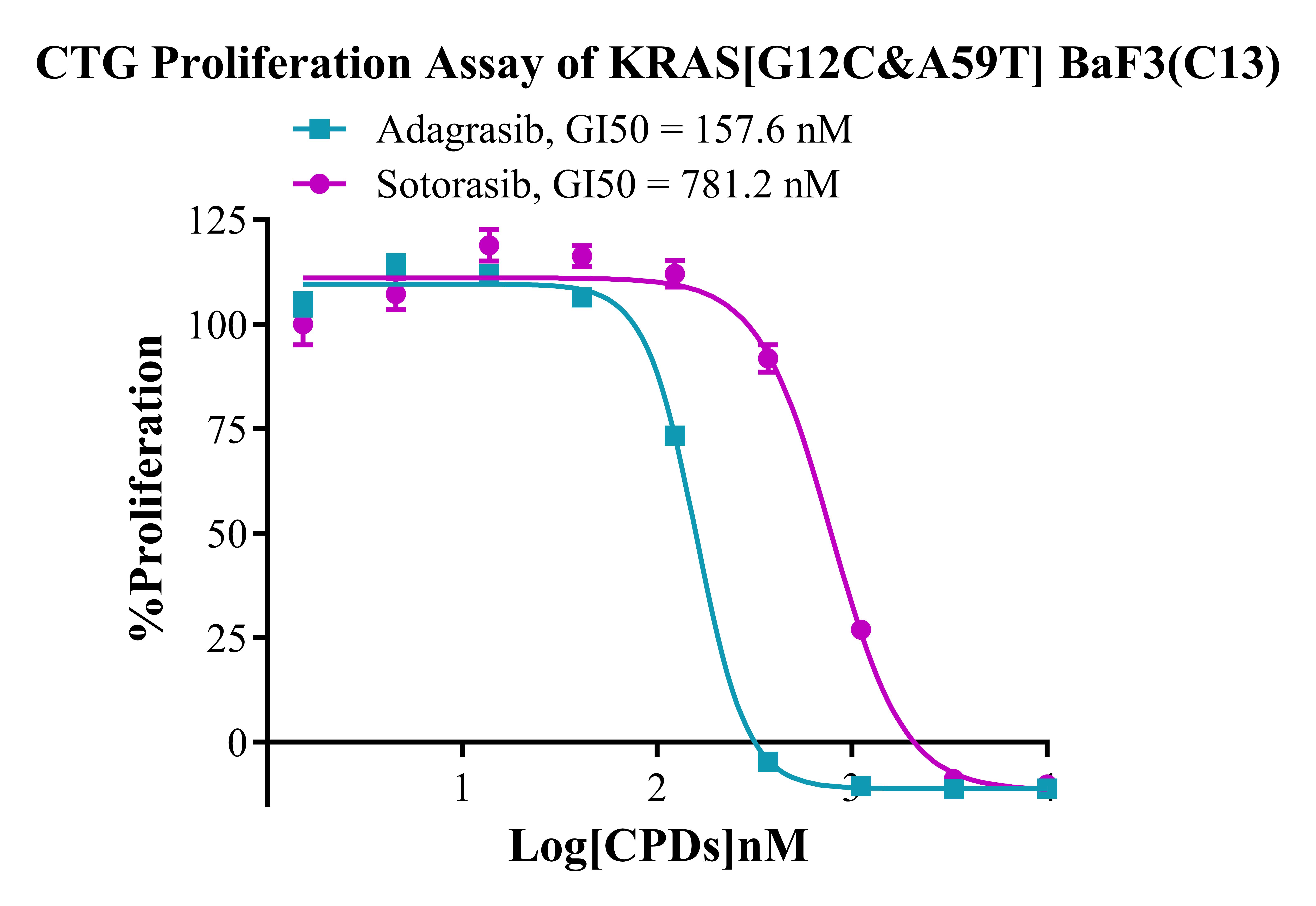 Figure 3. CTG Proliferation Assay of KRAS[G12C&A59T] BaF3 (C13). |