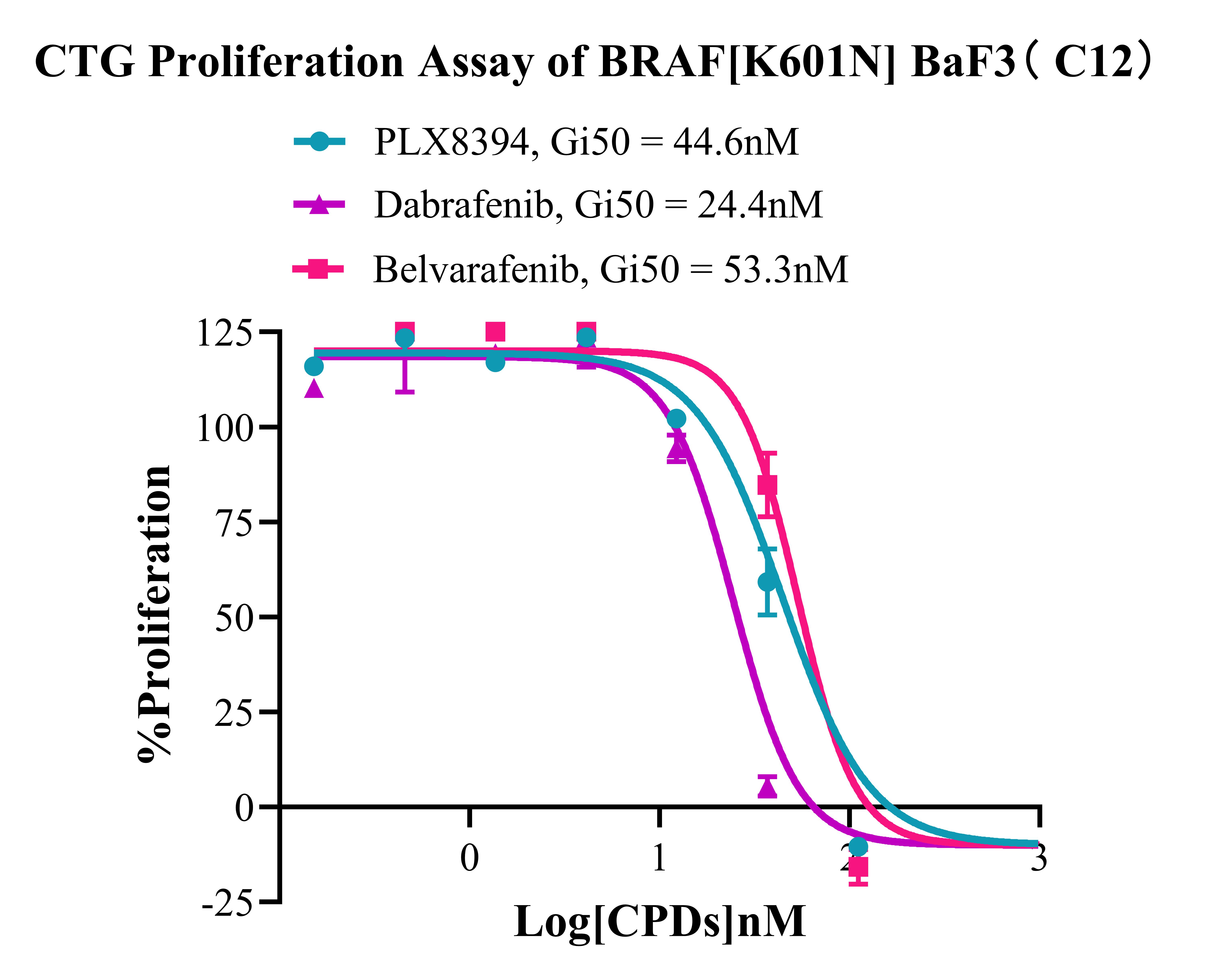 Figure 4. CTG Proliferation Assay of BRAF [K6D1N] BaF3 (C12). |