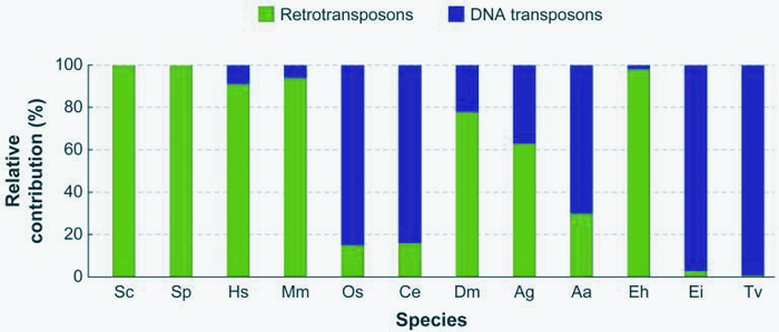 轉(zhuǎn)座因子(Transposable element,簡稱TE),又稱“跳躍基因”,是指從基因組的一個位置移動到另一個位置的DNA序列。這類因子最早由遺傳學(xué)家芭芭拉·麥克林托克于50多年前發(fā)現(xiàn)。起初,生物學(xué)家對麥克林托克的發(fā)現(xiàn)持懷疑態(tài)度。然而,在接下來的幾十年里,人們逐漸發(fā)現(xiàn),TE不僅會“跳躍”,而且?guī)缀醮嬖谟谒猩矬w(包括原核生物和真核生物)中,而且通常數(shù)量巨大。例如,TE約占人類基因組的50%,占玉米基因組的90%。