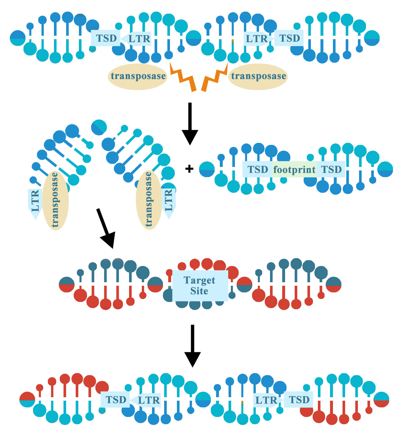 雖然轉(zhuǎn)座子有很多不同的類型,但DNA轉(zhuǎn)座子在實驗室中用于基因組操作最為常見。在實驗室中使用轉(zhuǎn)座子時,轉(zhuǎn)座酶基因以反式形式提供,以便將目標(biāo)基因插入轉(zhuǎn)座子的長末端重復(fù)序列(LTR)之間,類似于病毒載體的包裝過程。