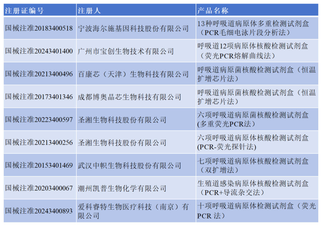 截止目前,獲證的病原檢測的試劑盒已有幾百種,部分列舉如下: