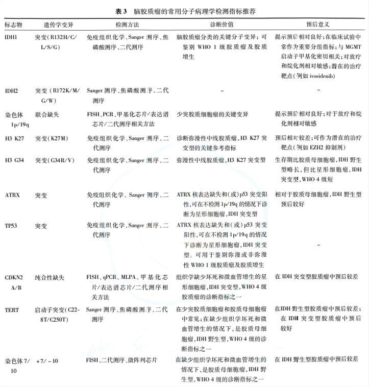 文中并對分子檢測的病理學(xué)指標(biāo)做了推薦: